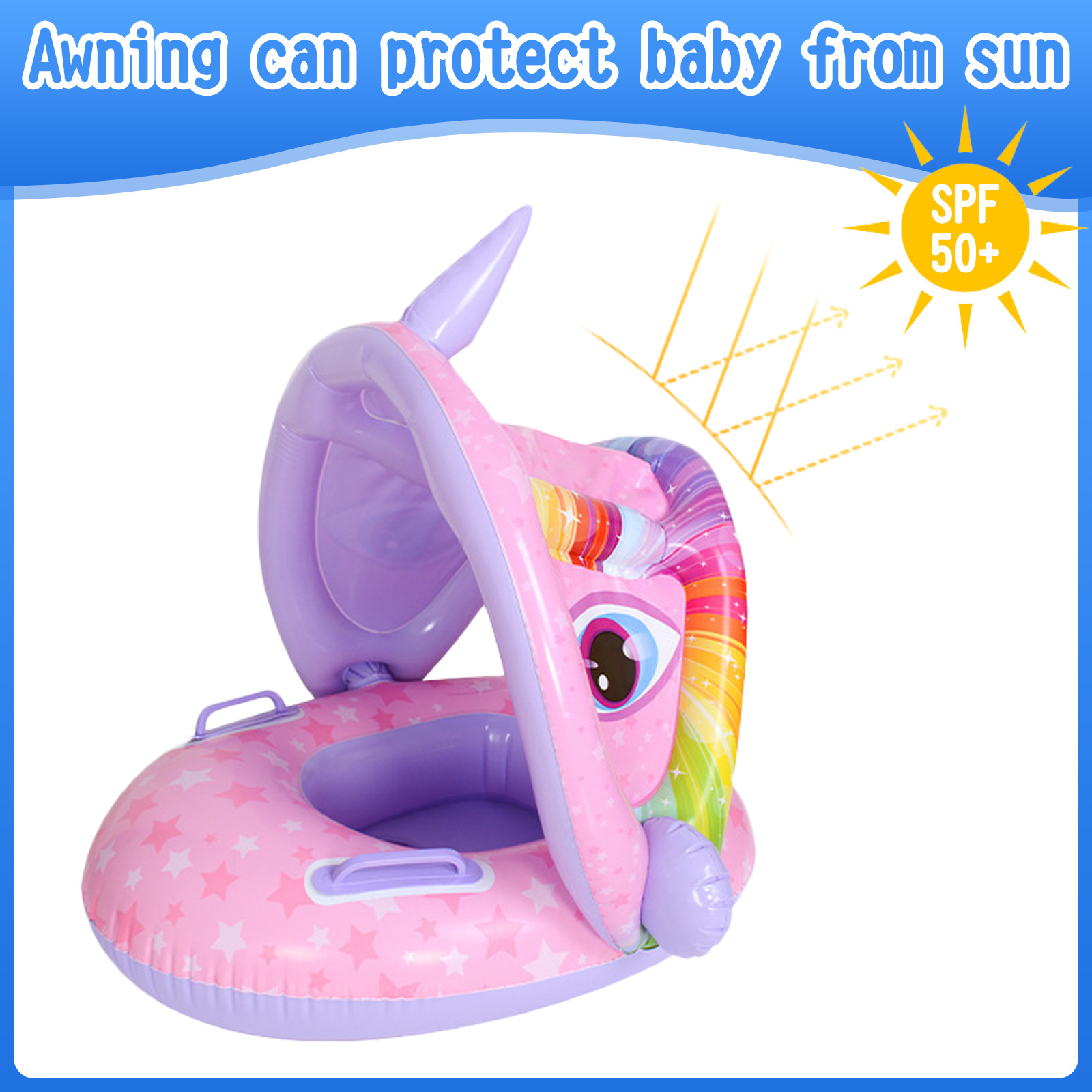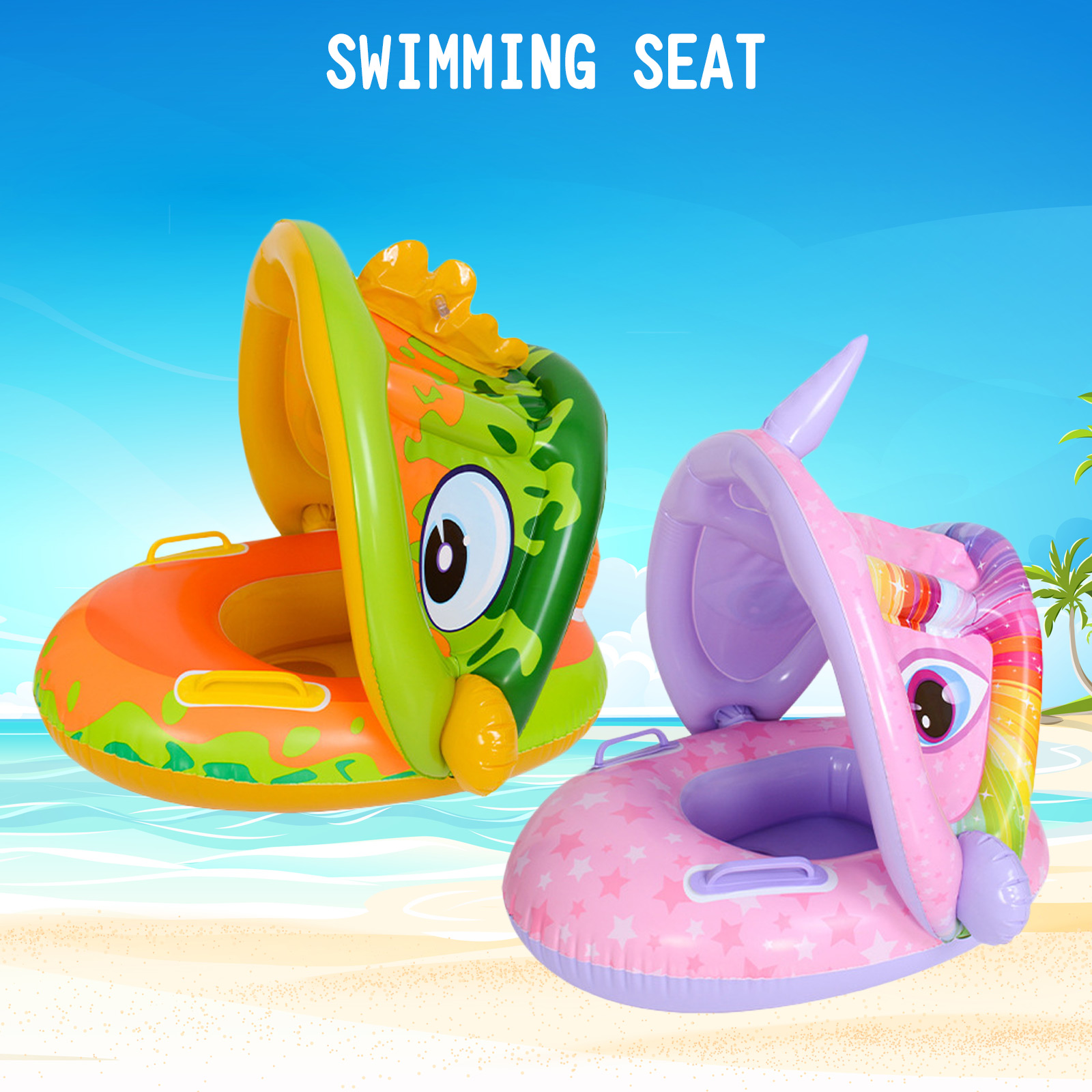 Детское Надувное плавающее кольцо для плавания с мультяшным рисунком, плавающее сидение с тентом для солнца, тент, веселые игрушки для бассейна, для купания, бассейна, ванны
