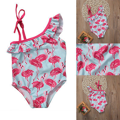 Купальник для девочек с фламинго на одно плечо оборками летний пляжный костюм