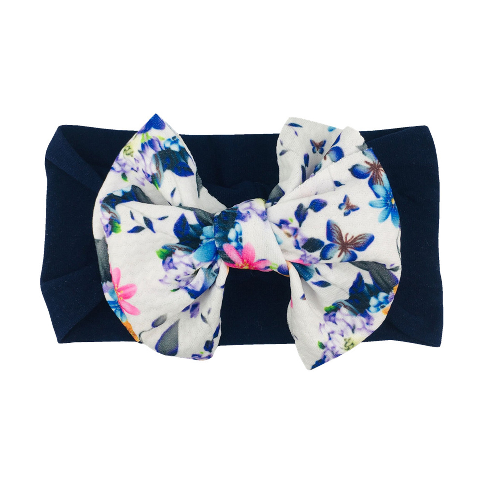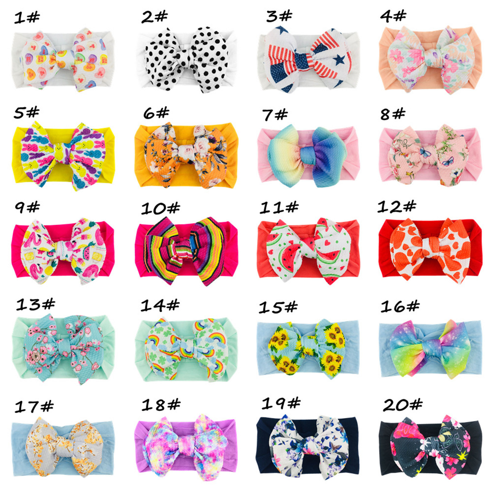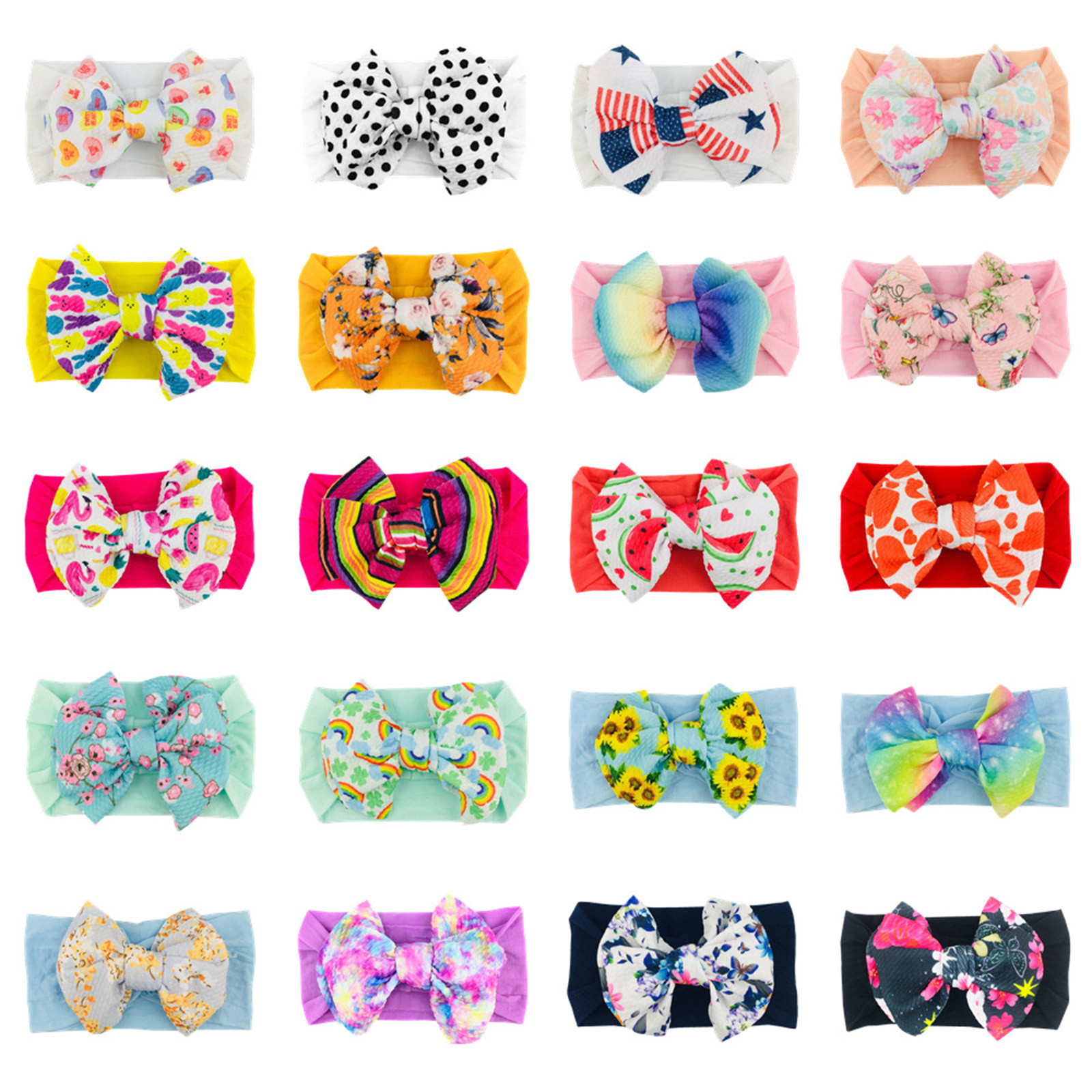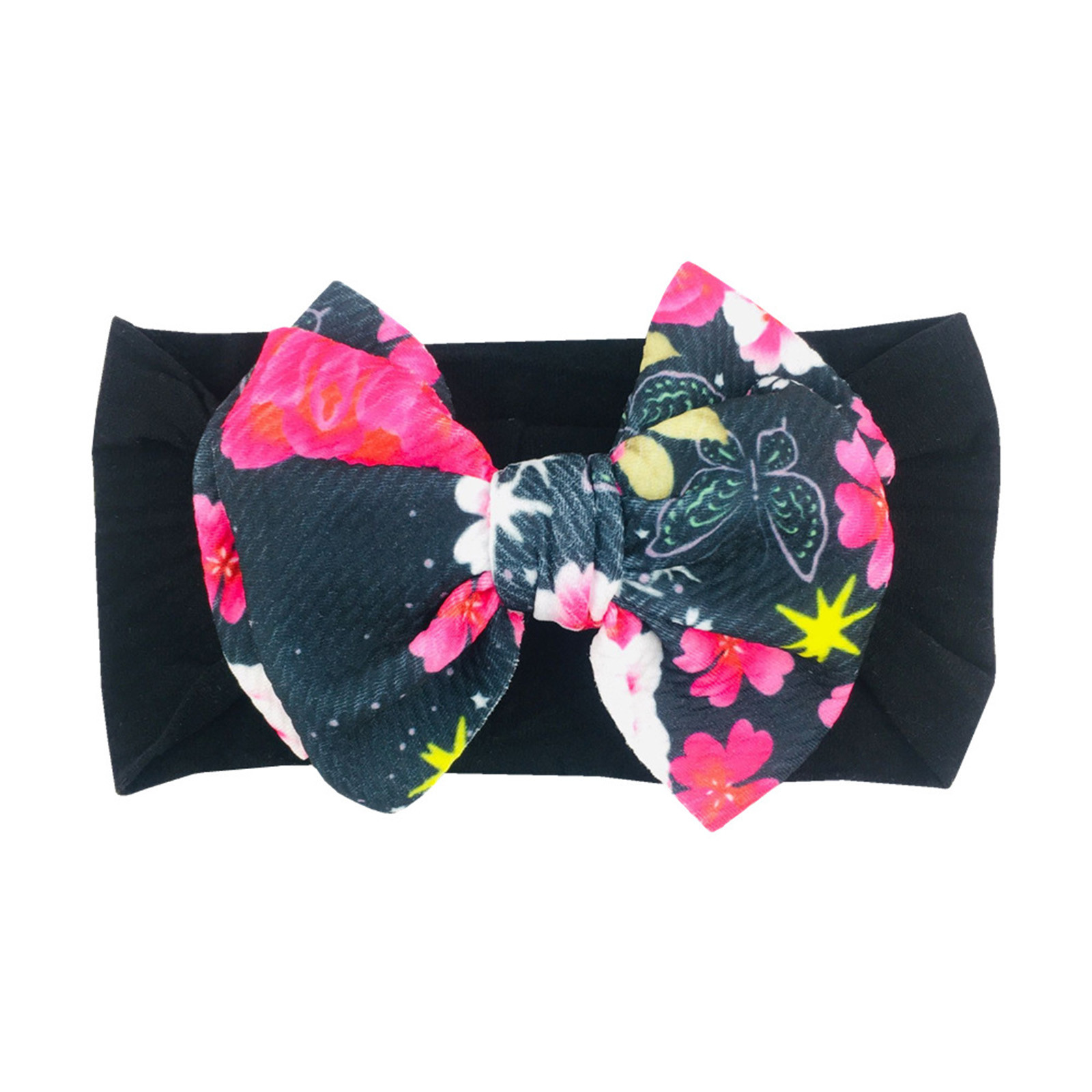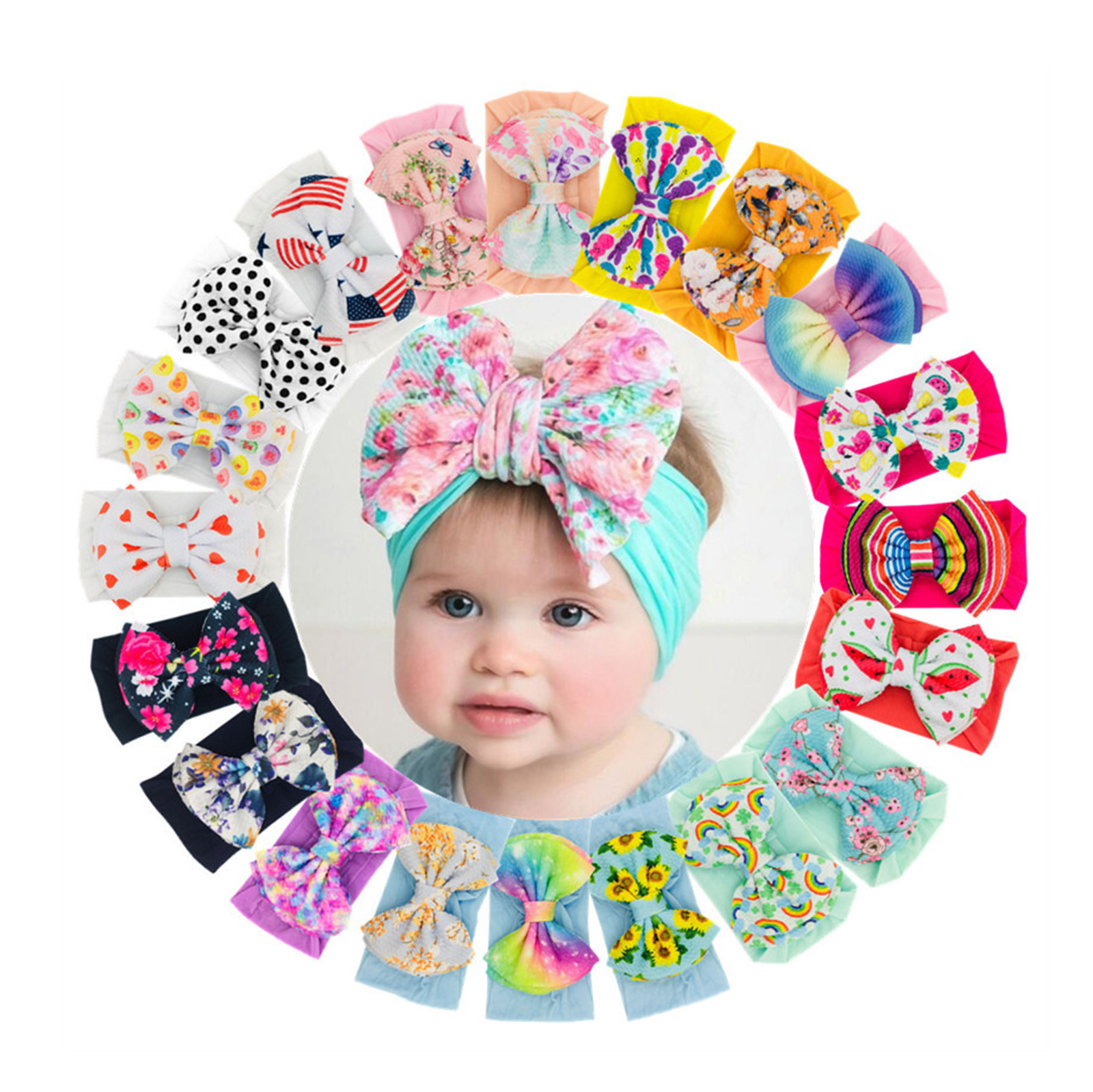 1 шт., повязка на голову с цветочным принтом и бантом для новорожденных девочек, эластичная повязка для головы, головной убор