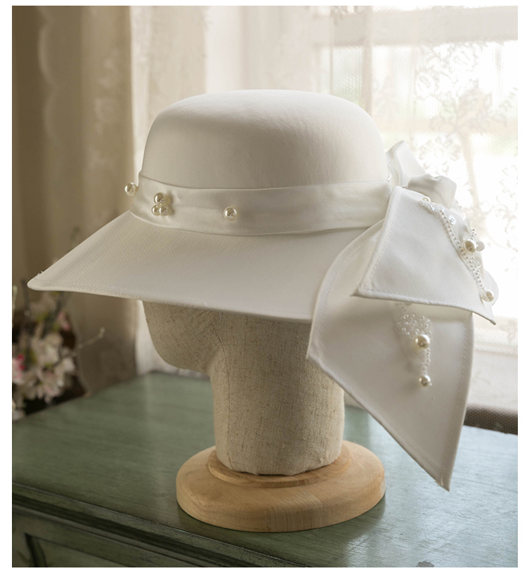 Французская женская белая большая атласная шляпа-федора с большим бантом и жемчужными бусинами, свадебная шляпа для невесты, Высококачественная шляпа для фотосессии, головной убор