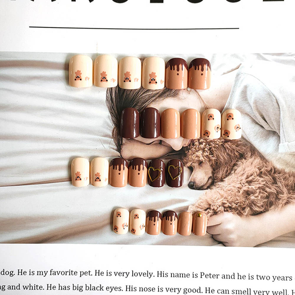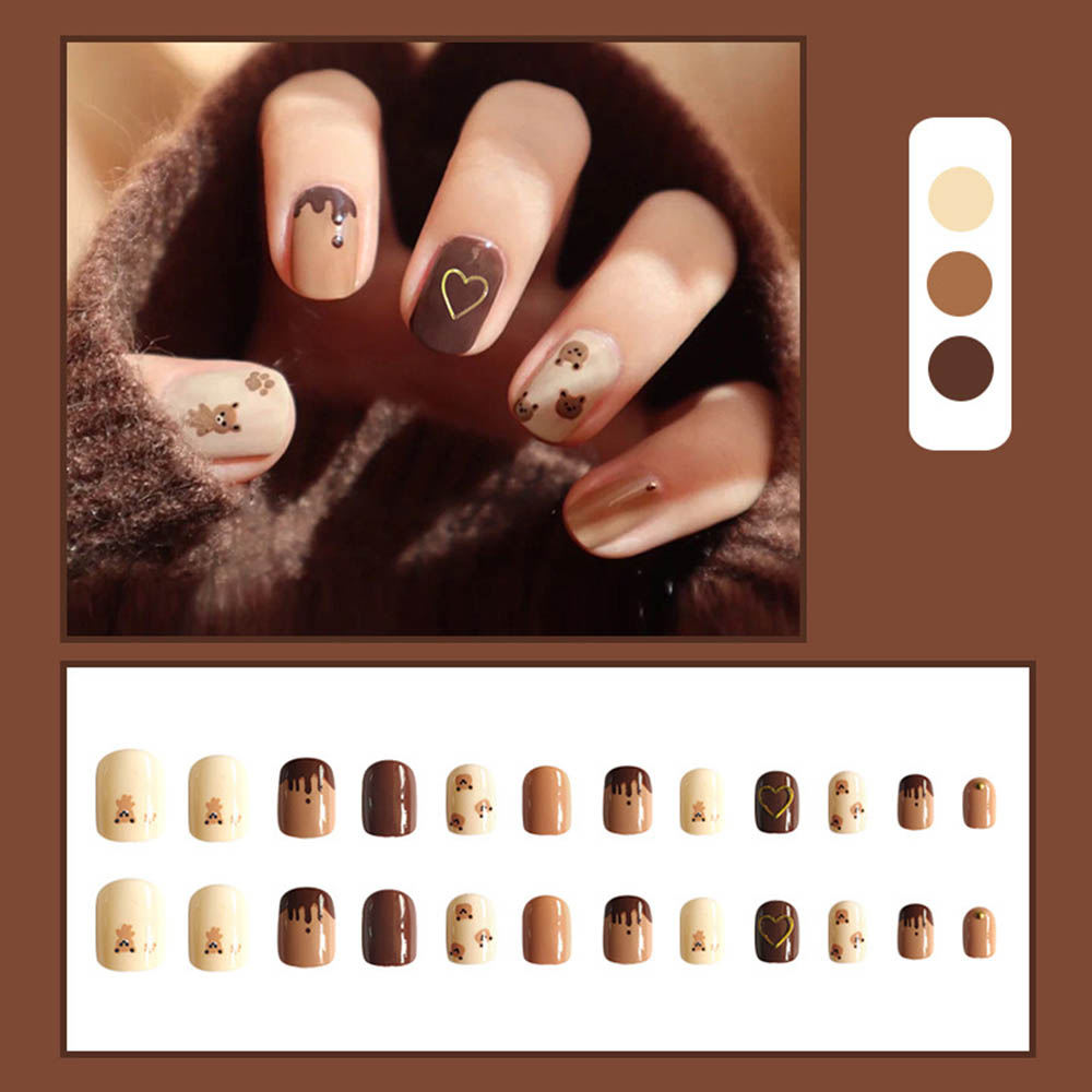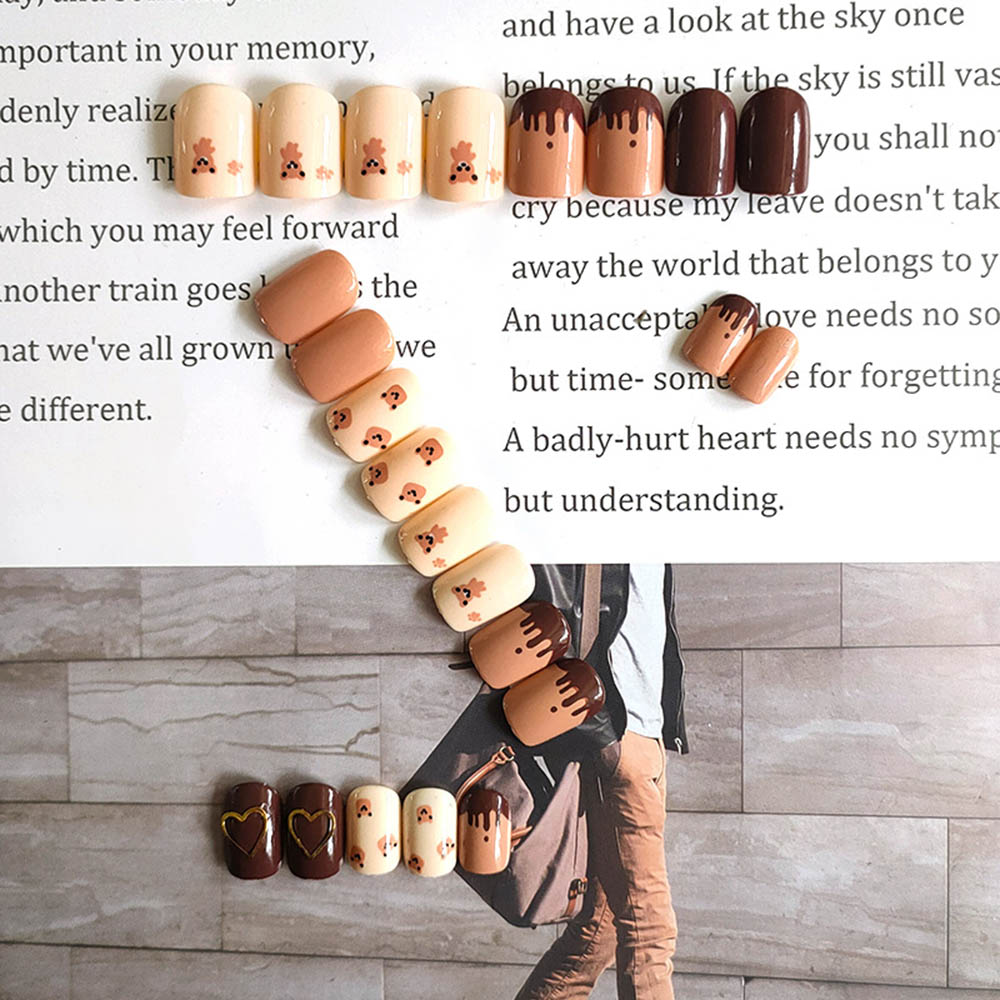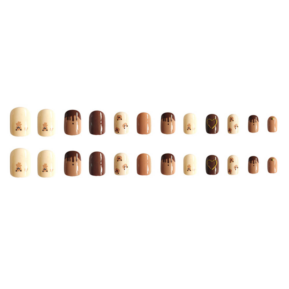 Новые 24 шт Короткие квадратные накладные ногти медведя съемные маникюрные накладки