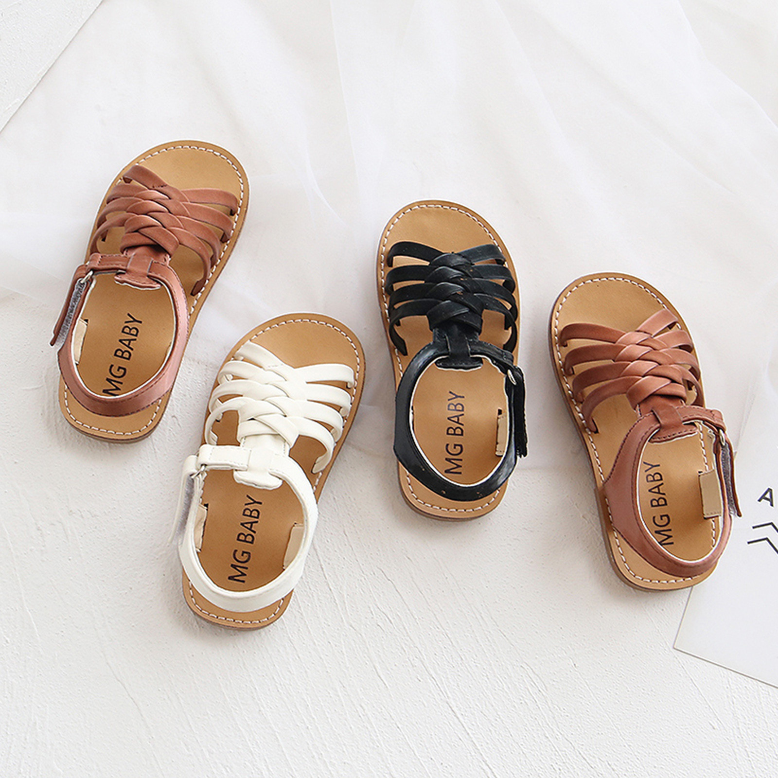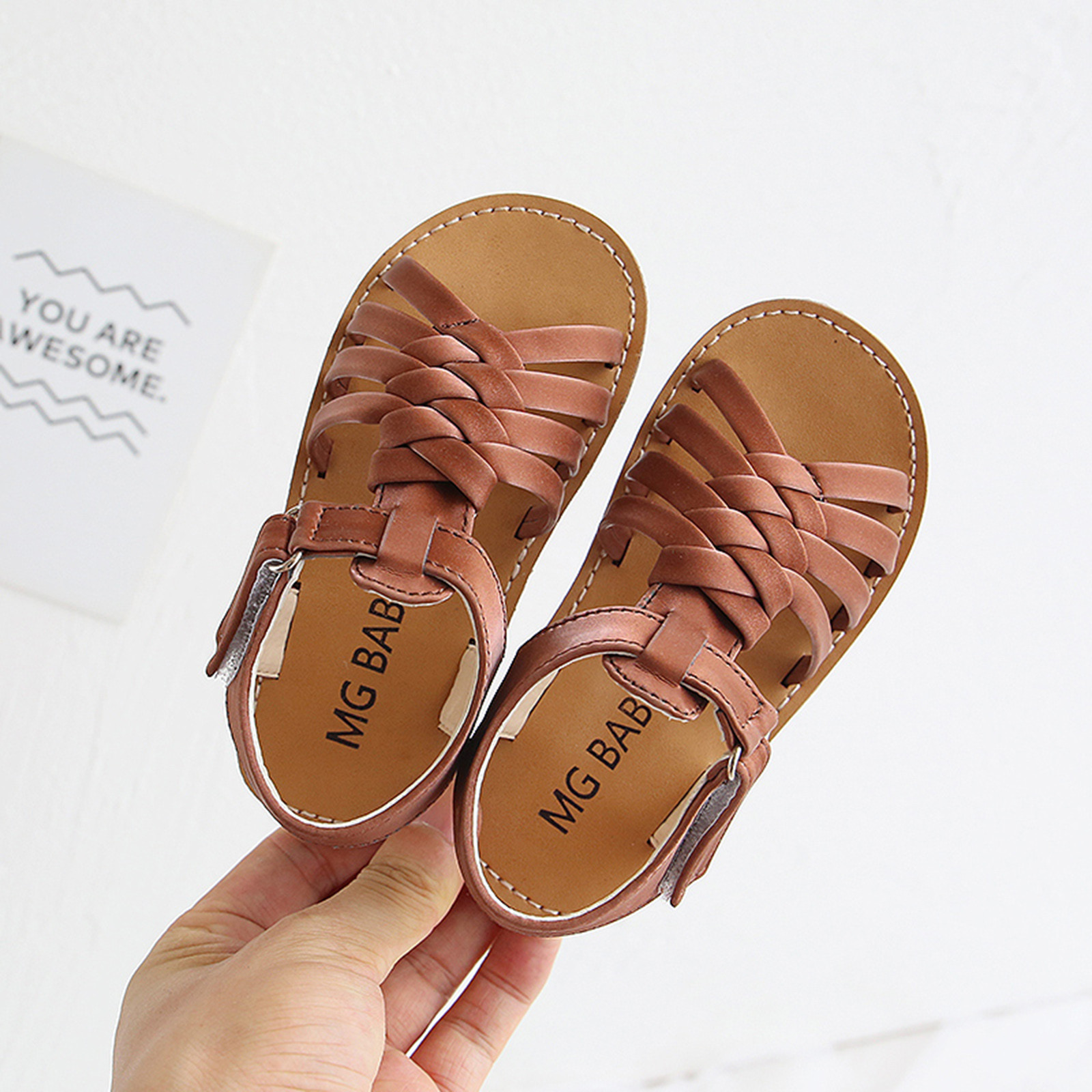 Детская кожаная пляжная обувь с перекрестными ремешками для маленьких мальчиков и девочек; Сандалии