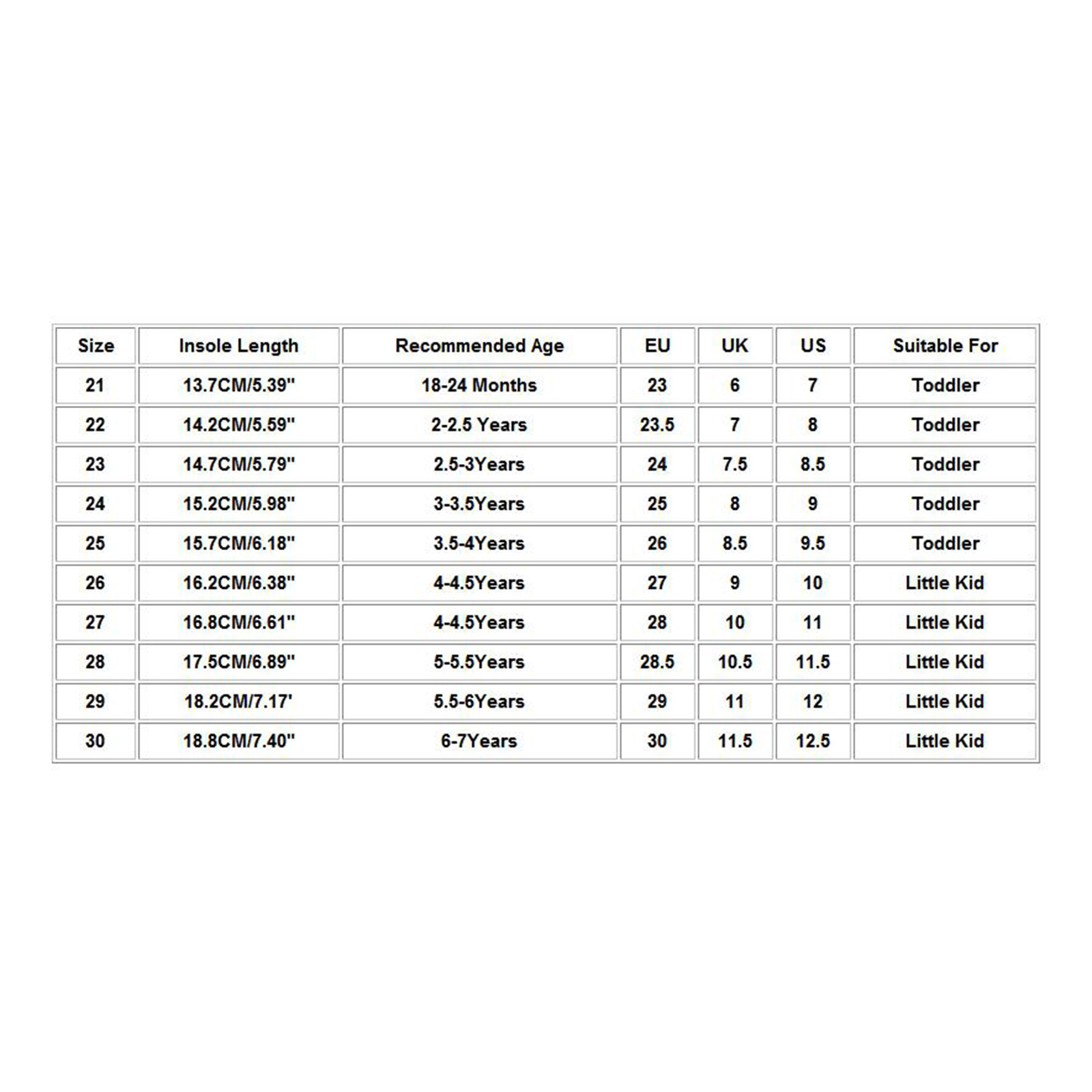 Размеры | Длина стельки | Рекомендуемый возраст | ЕС | Великобритания | США | Подходит для |