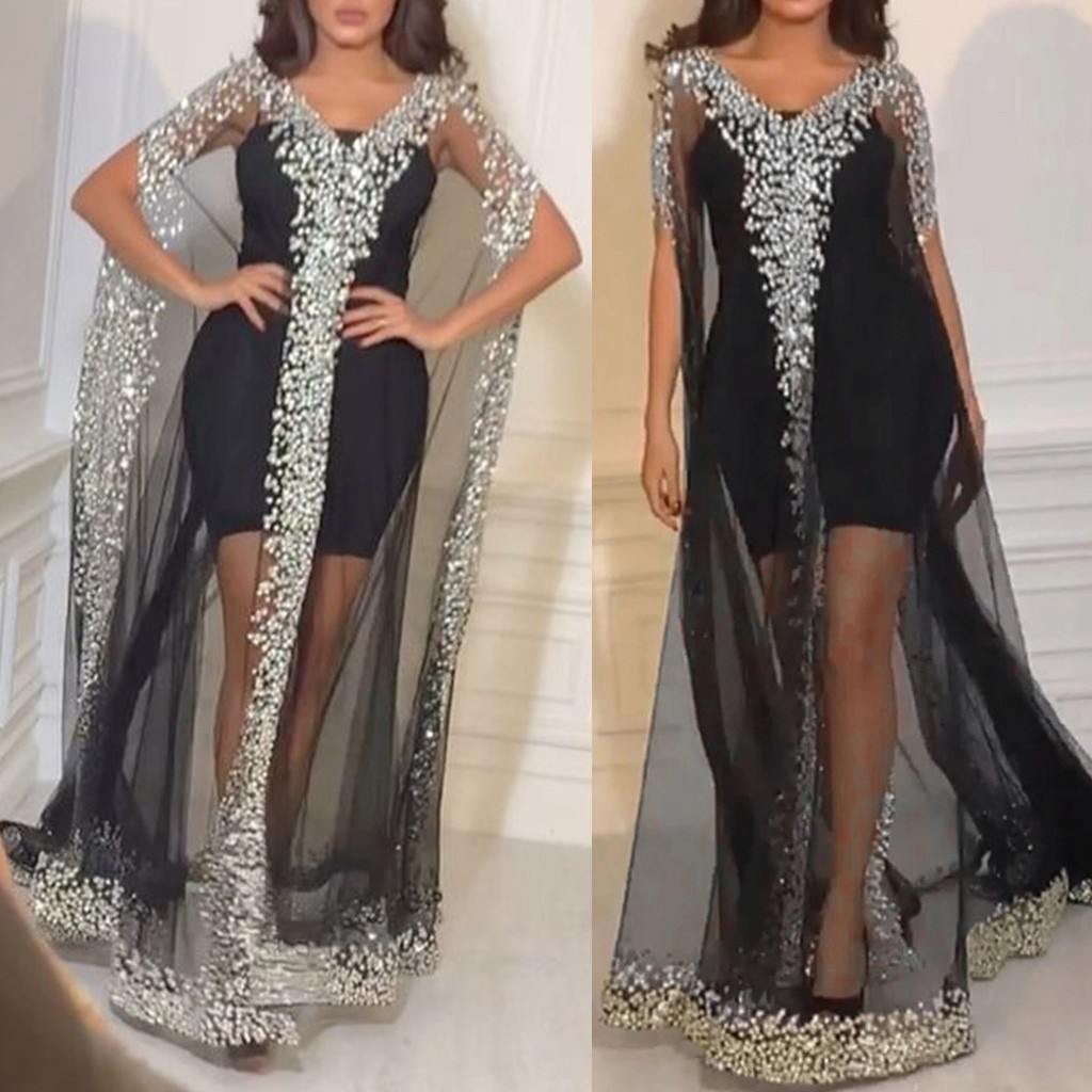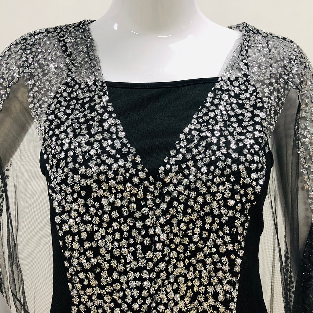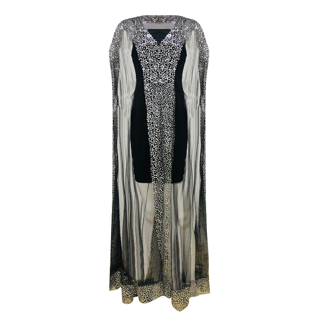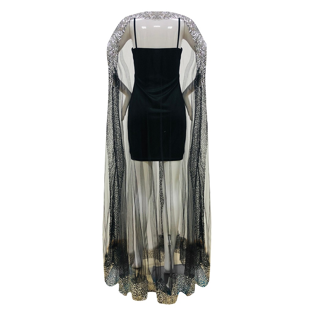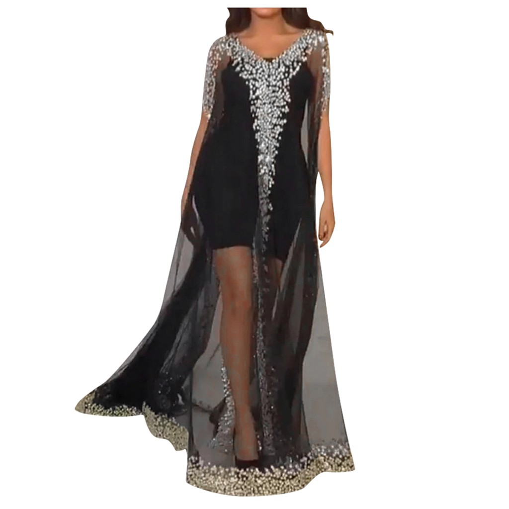 Женский модный сетчатый костюм с короткими рукавами с блестками, длинное Сетчатое платье из двух предметов