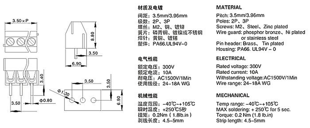 Шаг: 3,5 мм/3,96 мм