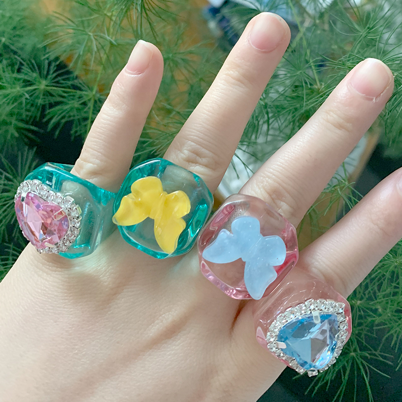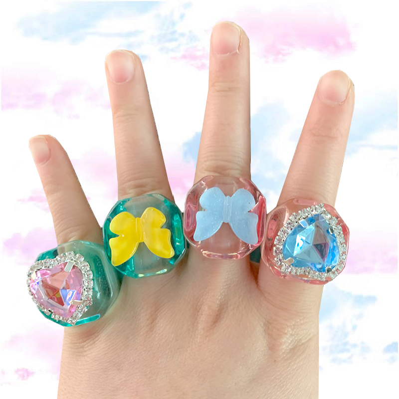 Y2K ювелирные изделия блестящий сердце женские кольца с настоящими Австрийскими