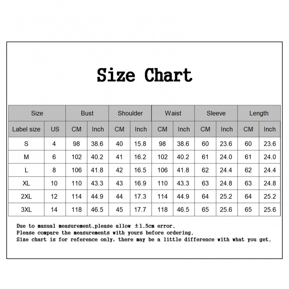[Наш Размер M] Бюст: 102 см/40,2 дюйма, талия: 102 см/40,2 дюйма, Плечи: 41 см/16,1 дюйма, рукав: 61 см/24 дюйма, длина: 61 см/24 дюйма (прибл.)