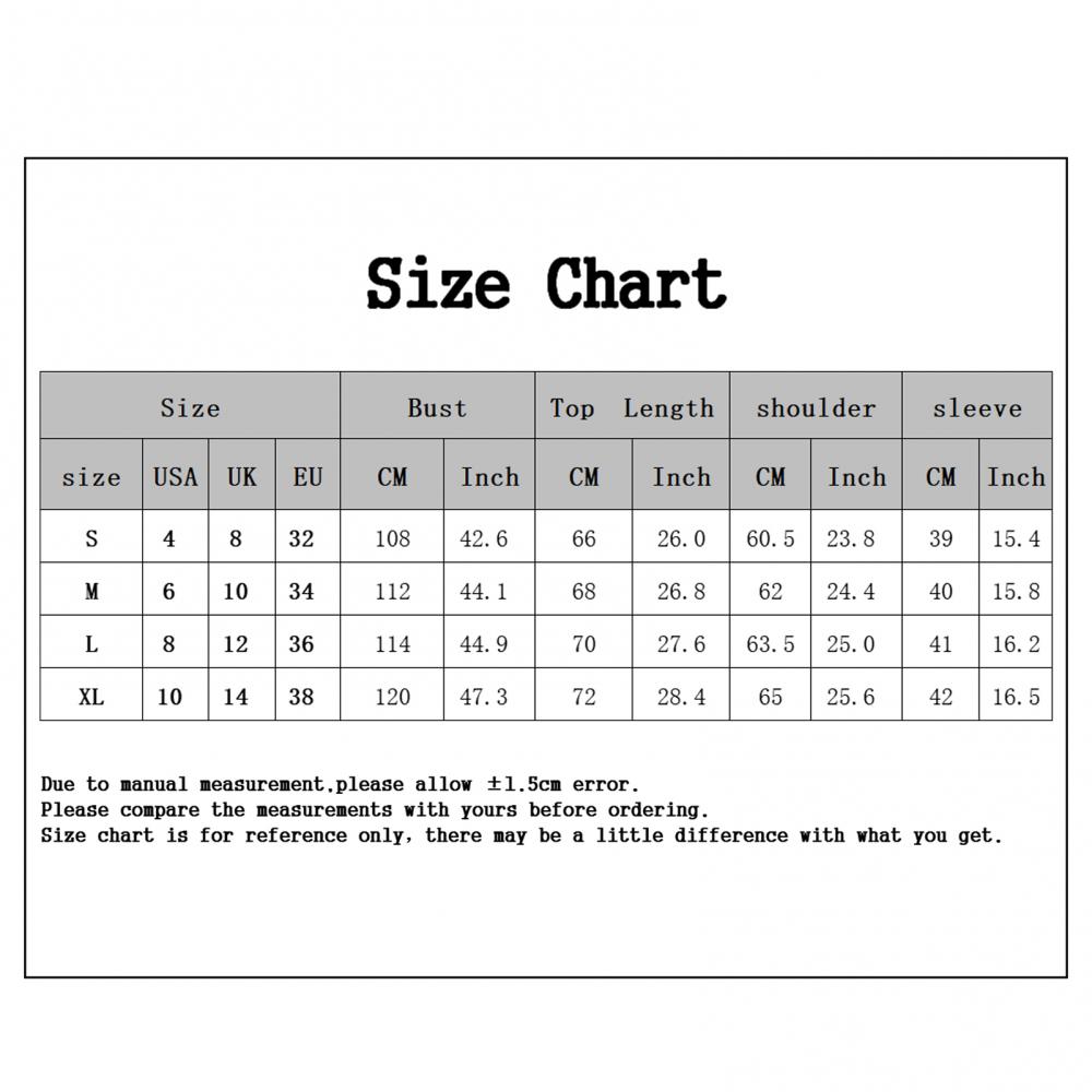 [Наш Размер L] Обхват груди: 114 см/44,88 ", ширина плеч: 63,5 см/25", длина рукава: 41 см/16,14 ", Длина: 70 см/27,56" (прибл.)