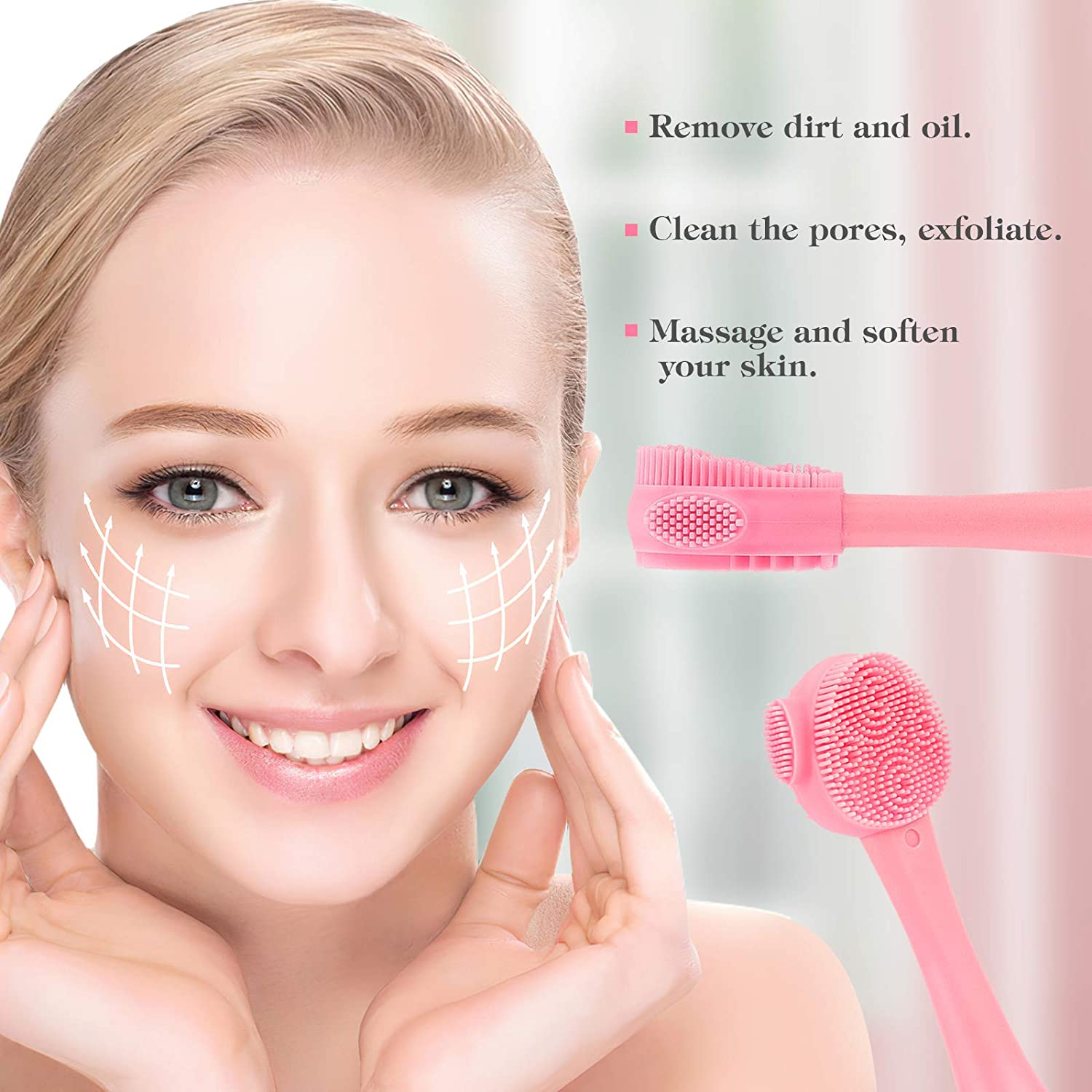 ✔?Многоцелевой:Трехголовная щетка, одна сторона отшелушивающий для лица и очищения, другая сторона для массажа лица, маленькая часть кисти подходит для губ и носа. Кисть имеет мягкий силиконовый Отшелушивающий отшелушиватель для лица, щетку для чистки носа и массажер для лица/сборщик масок на одной голове, который может легко и удобно отшелушиваться, В то время как другая головка имеет аппликатор для упаковки лица. Собирайте очистку, массирование и упаковку для лица 4 в 1.