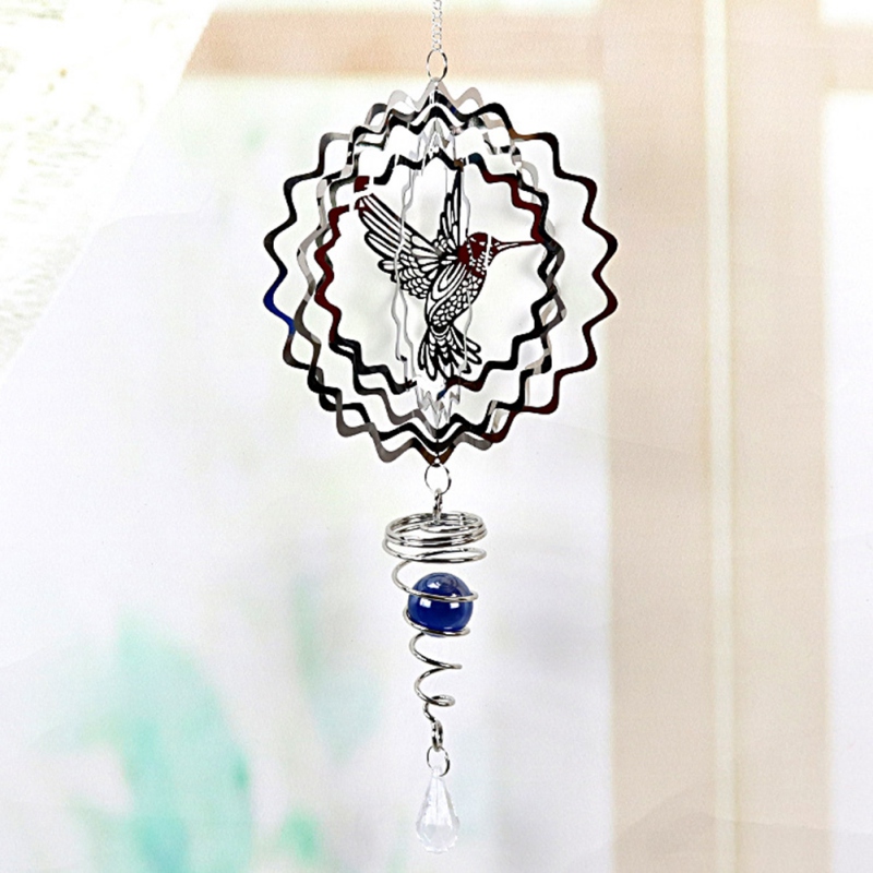 Элегантный 3D дизайн: Этот колокольчик-это 3D дизайн, который очень хорош, вы можете сделать красивое 3D изображение. Этот ветряной колокольчик обладает подвесным кристаллом и вращающейся областью, которая может легко отражать солнце, придаст вам 3D эффект.