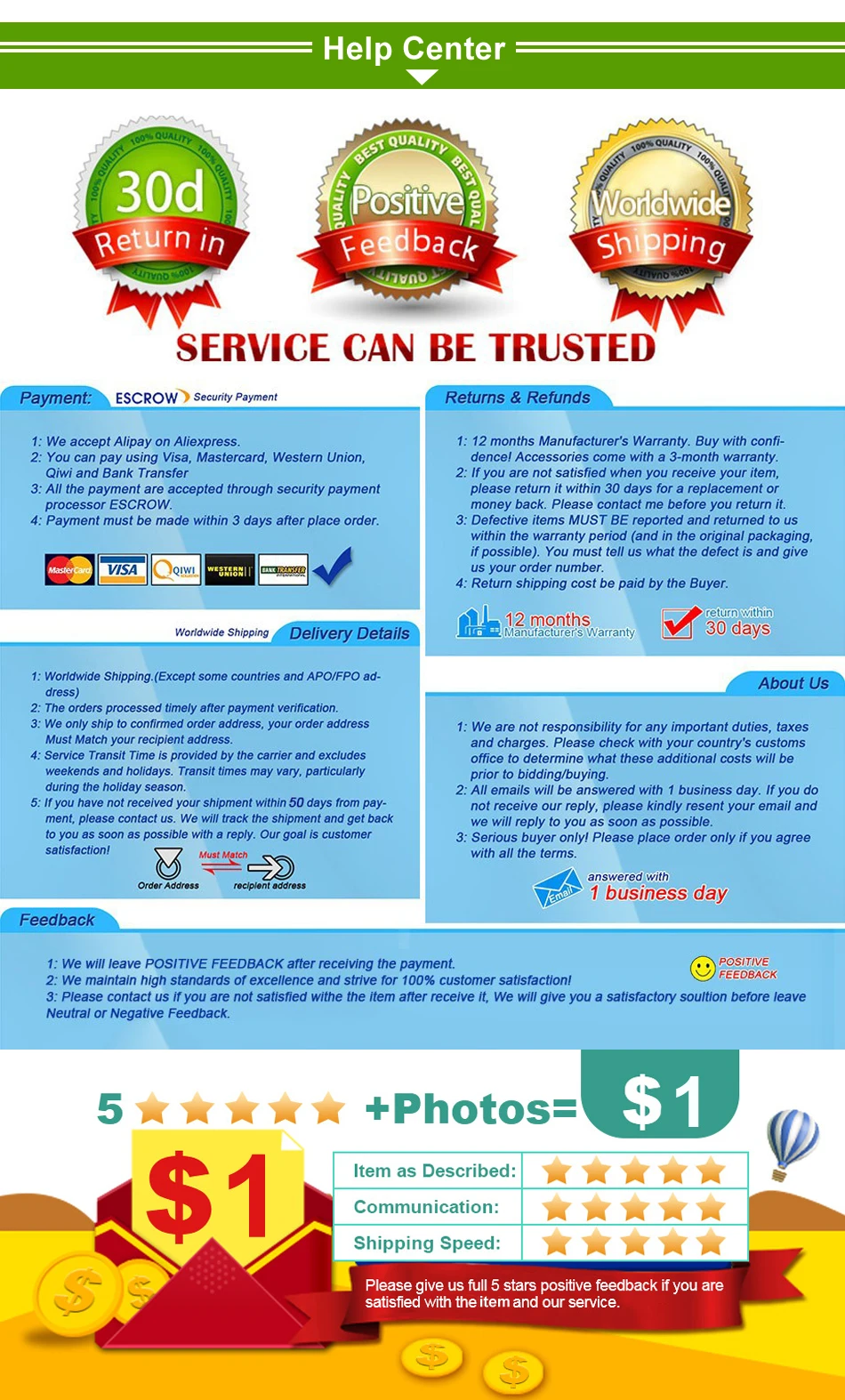 2. Если по какой-либо причине вы не удовлетворены своей покупкой, пожалуйста, свяжитесь с нами, и мы сделаем все возможное, чтобы решить эту проблему. Пожалуйста, не оставляйте нейтральные или негативные отзывы без каких-либо сообщений.