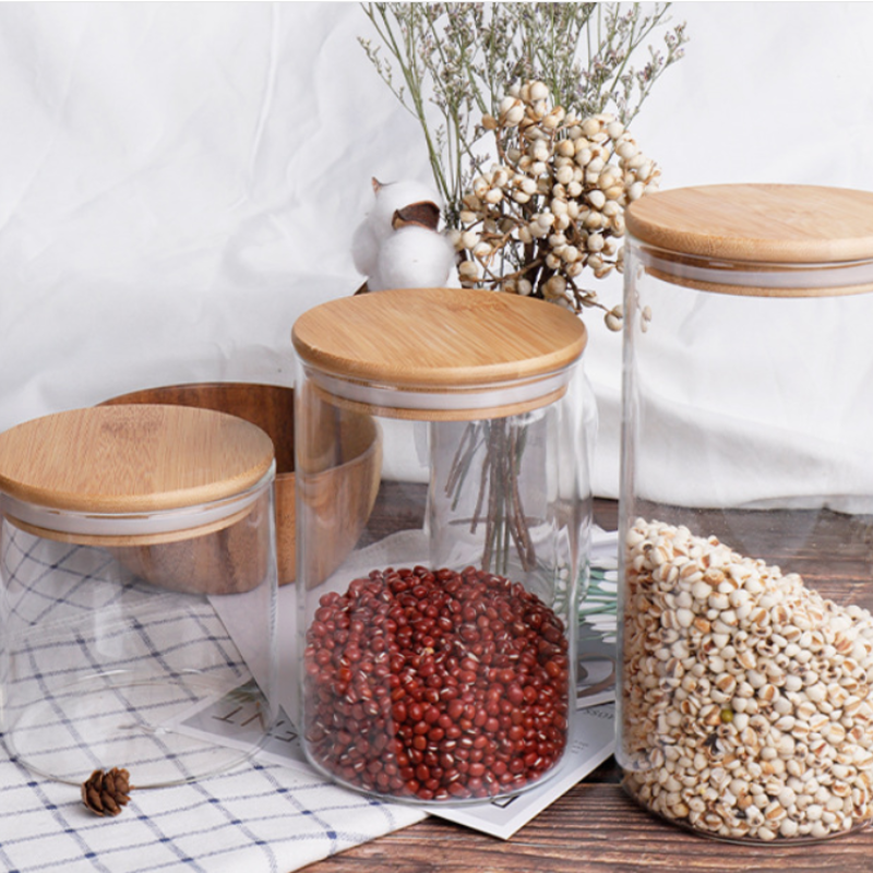 Резервуар для хранения, герметичные банки, боросиликатное стекло, экологически чистые и здоровые, Деревянные крышки, хороший эффект герметизации, может продлить свежесть пищи, широкий и большой диаметр, легко взять еду, используется для хранения закусок, шоколад, паста, Кофейные зерна и другие продукты отвечают различным потребностям хранения и являются необходимыми контейнерами для хранения для домашнего использования.