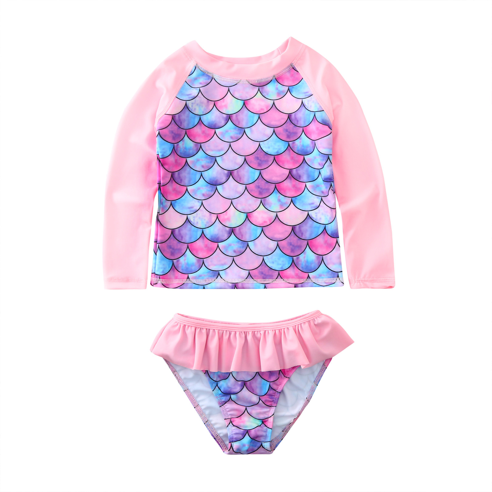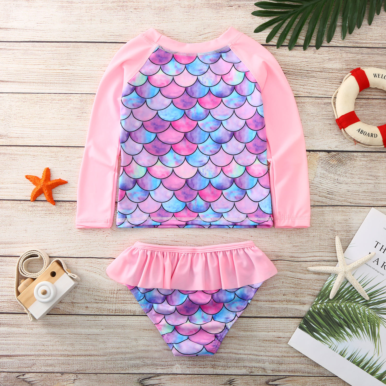 Купальный костюм русалки с длинными рукавами для маленьких девочек; Комплект из двух предметов; Пляжный купальник
