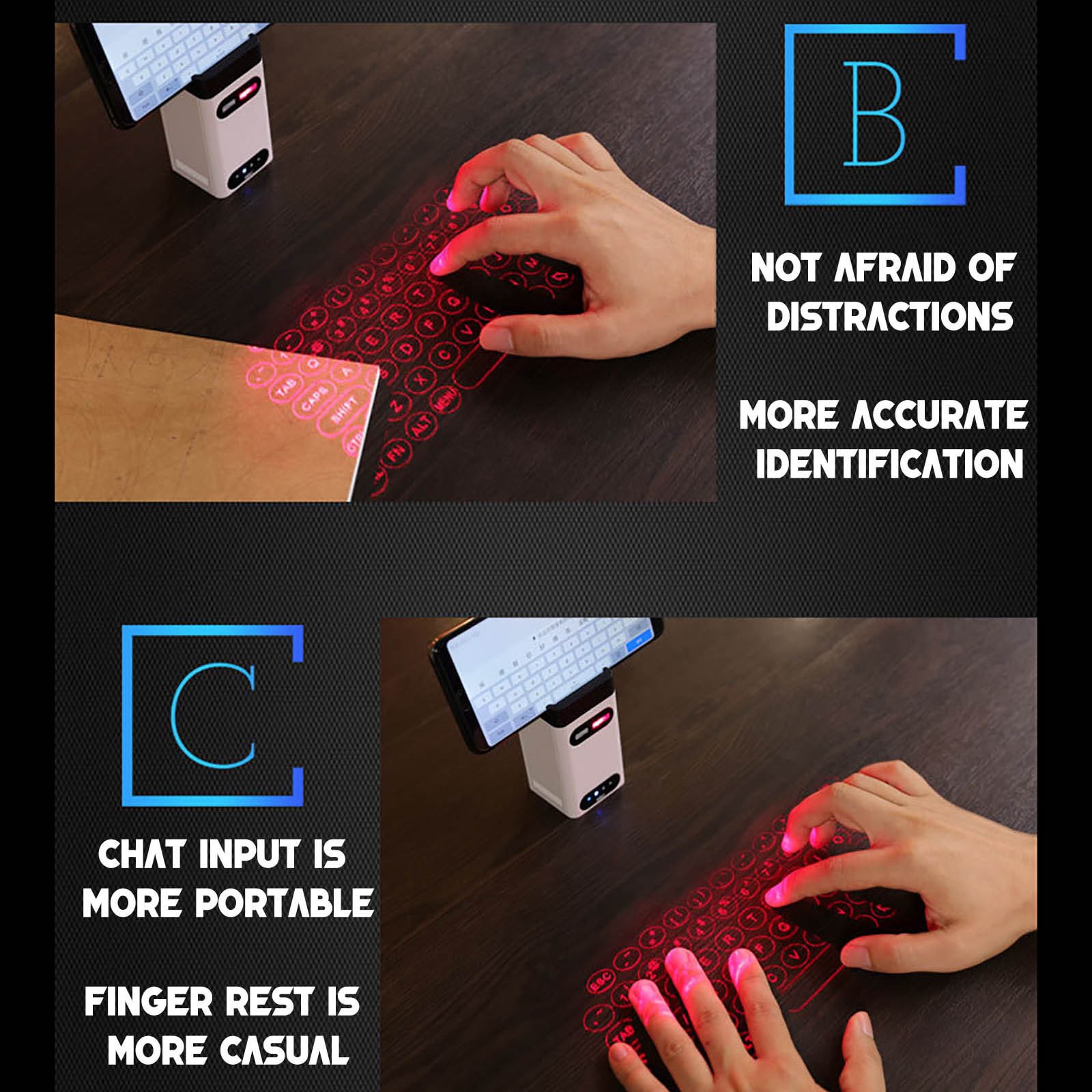 Физическая клавиатура не требуется, маленький размер, легко носить с собой и очень подходит для переноски; Проекционная клавиатура может адаптироваться к большинству рабочих сред.