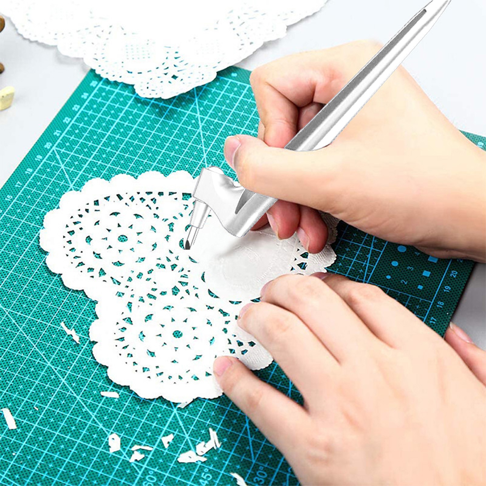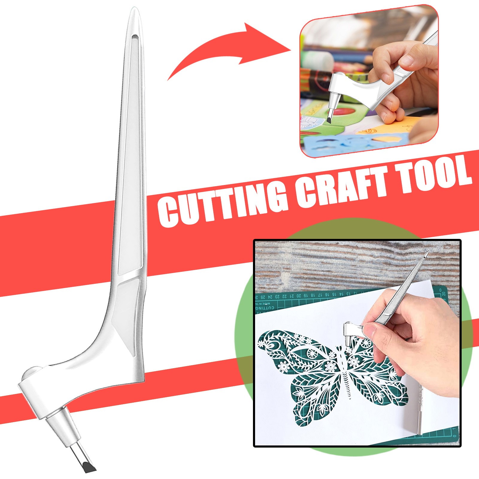 Ремесленные режущие инструменты, нержавеющая сталь Ремесленные ножи с вращающимся на 360 градусов лезвием, художественный Режущий инструмент для рукоделия (+ 1 шт. A4 Линейка для рукоделия)