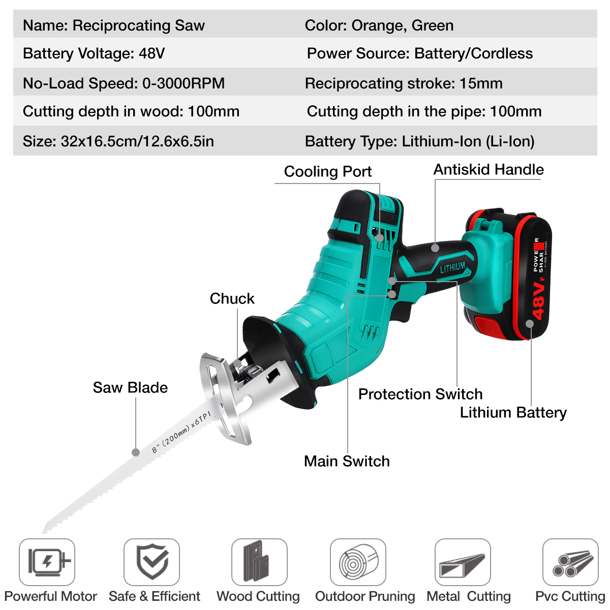 1. Мощный двигатель. 48V батарея для мощного, контролируемая, быстро резаком Hexin дерево, трубы и металлов.