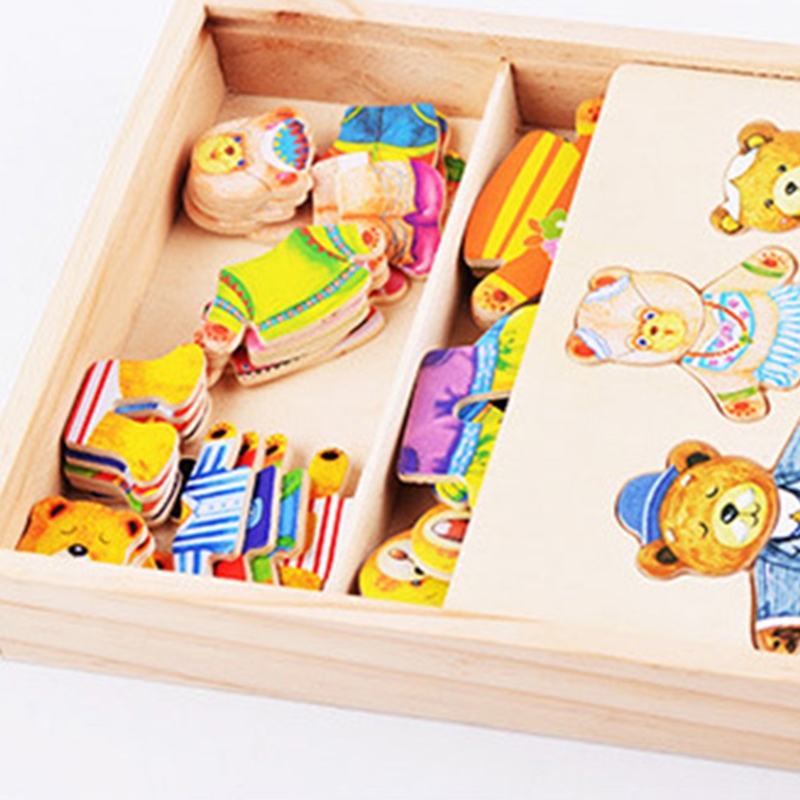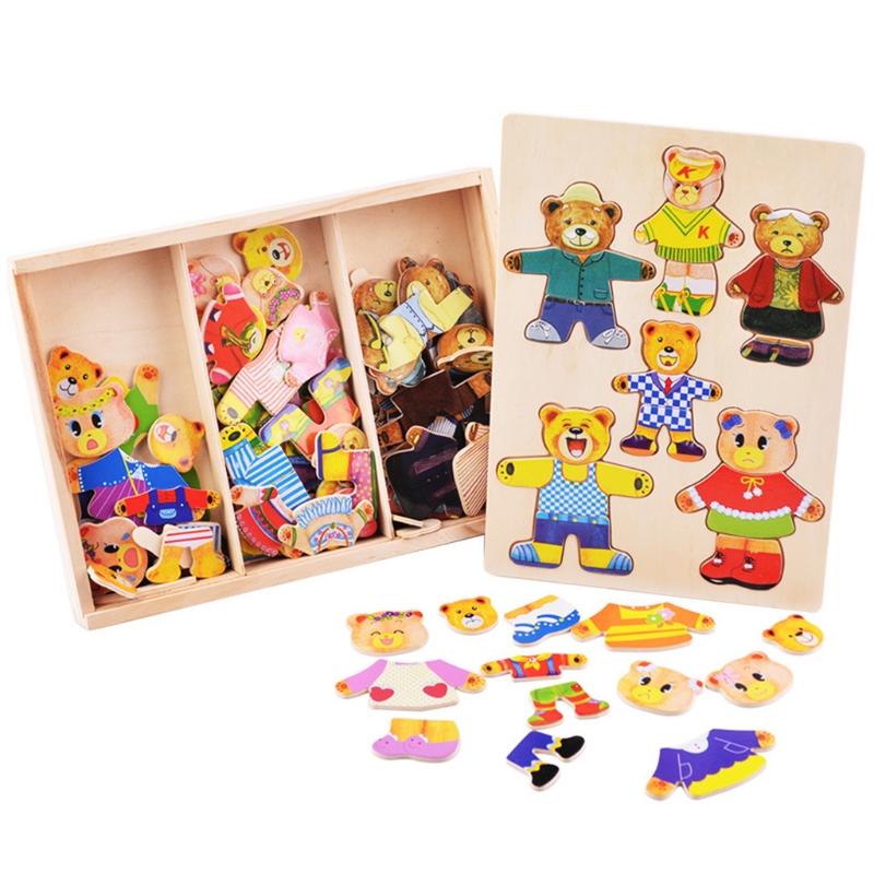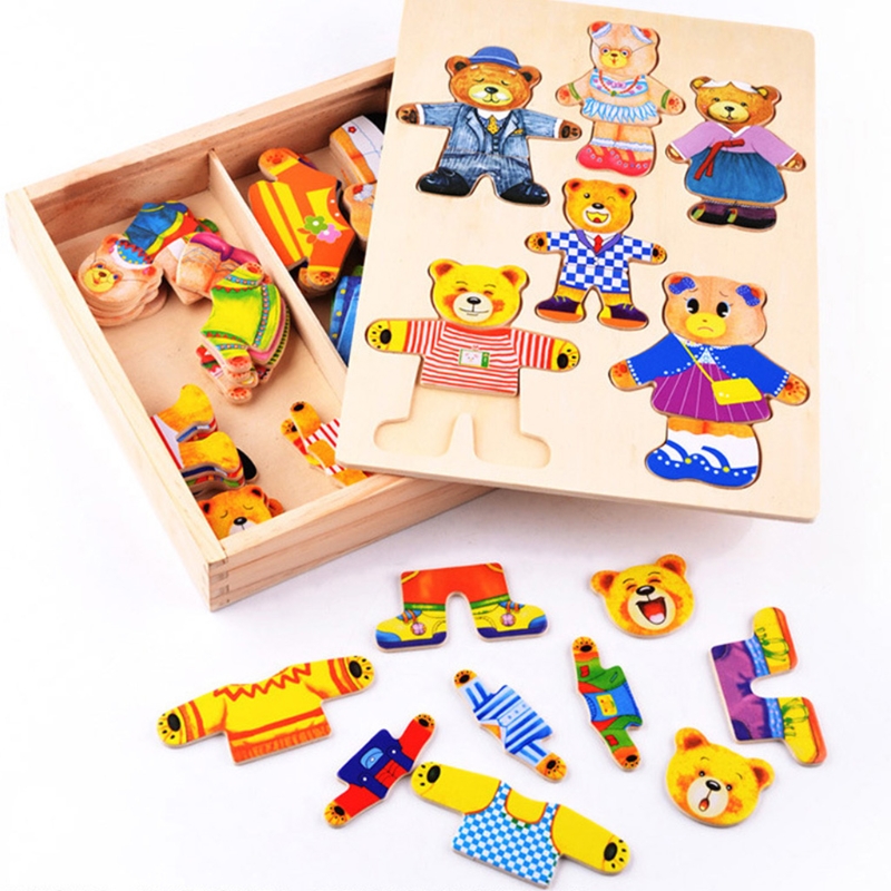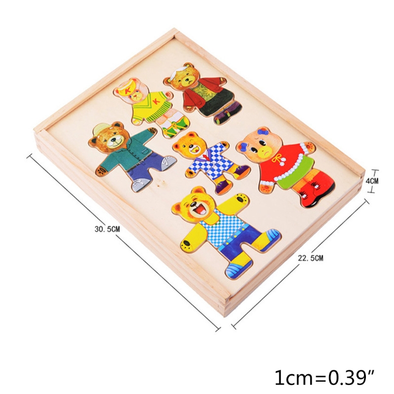 85DE маленький медведь, меняющаяся ткань, Набор пазлов, Детские Мультяшные пазлы, игрушки, деревянная коробка, обучающая игрушка, детская деревянная игрушка, подарок