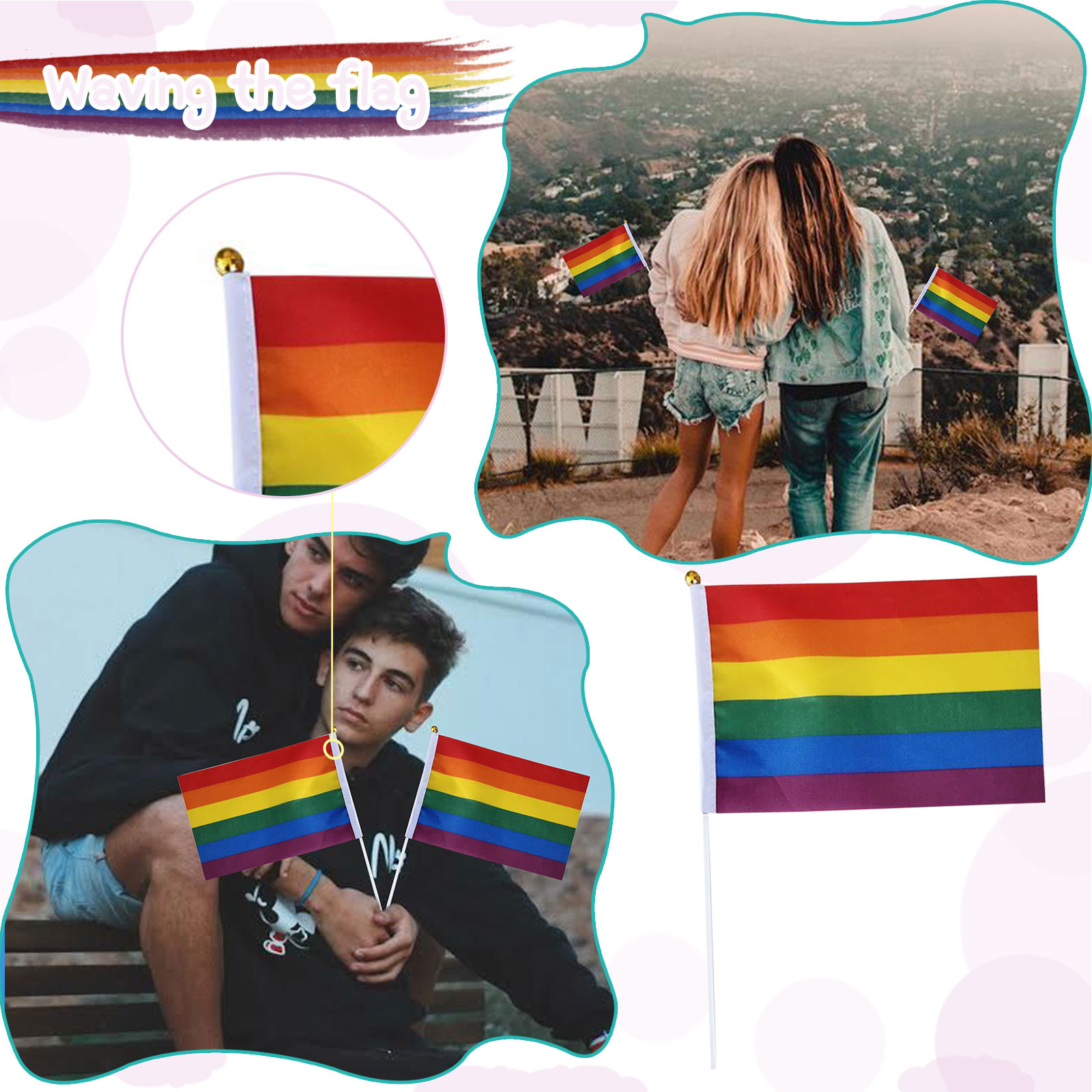 Универсальное применение: 3 вида радужных флагов примерно 14 см x 21 см, 20 см x 28 см, 30 см x 45 см, идеально подходит для украшения, особых вечеринок, торжеств, украшение автомобиля, сад, стол, парады и украшения сада, а также различные партии воссоединения.