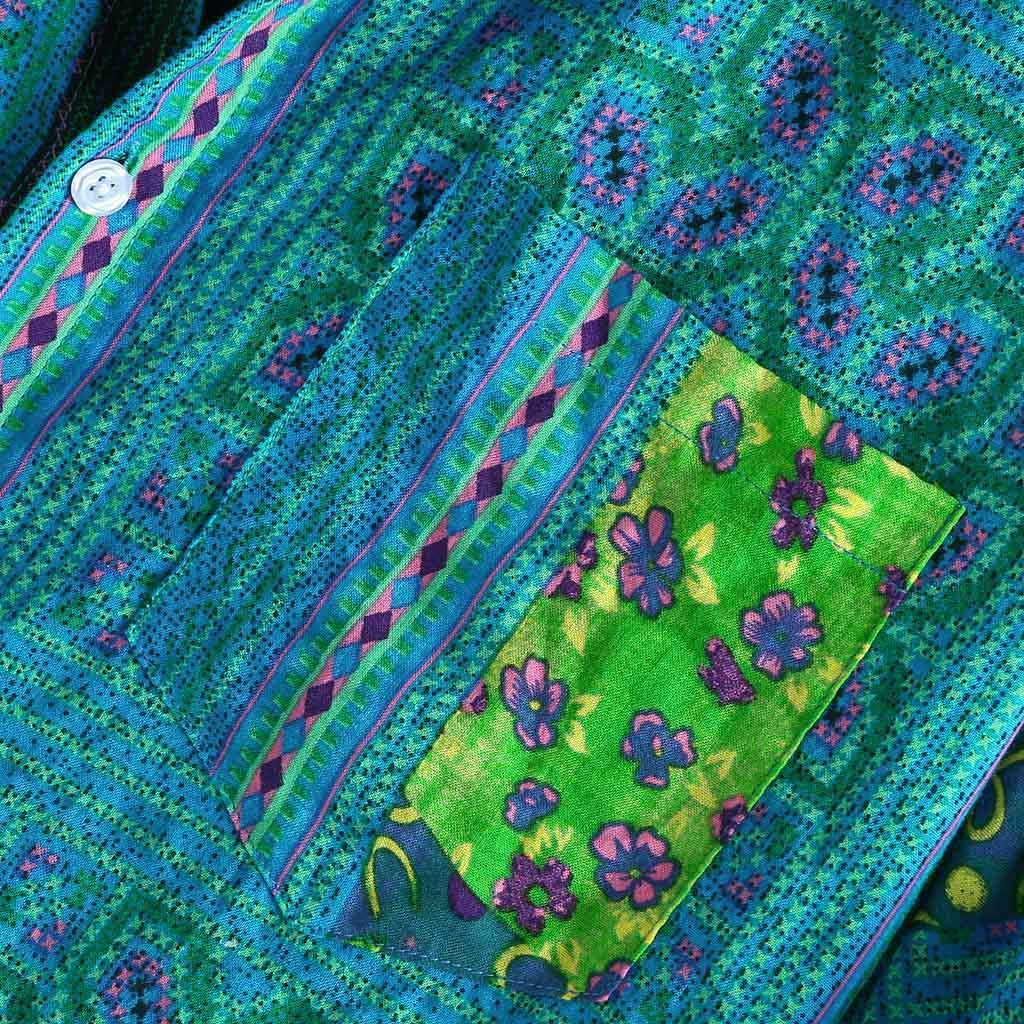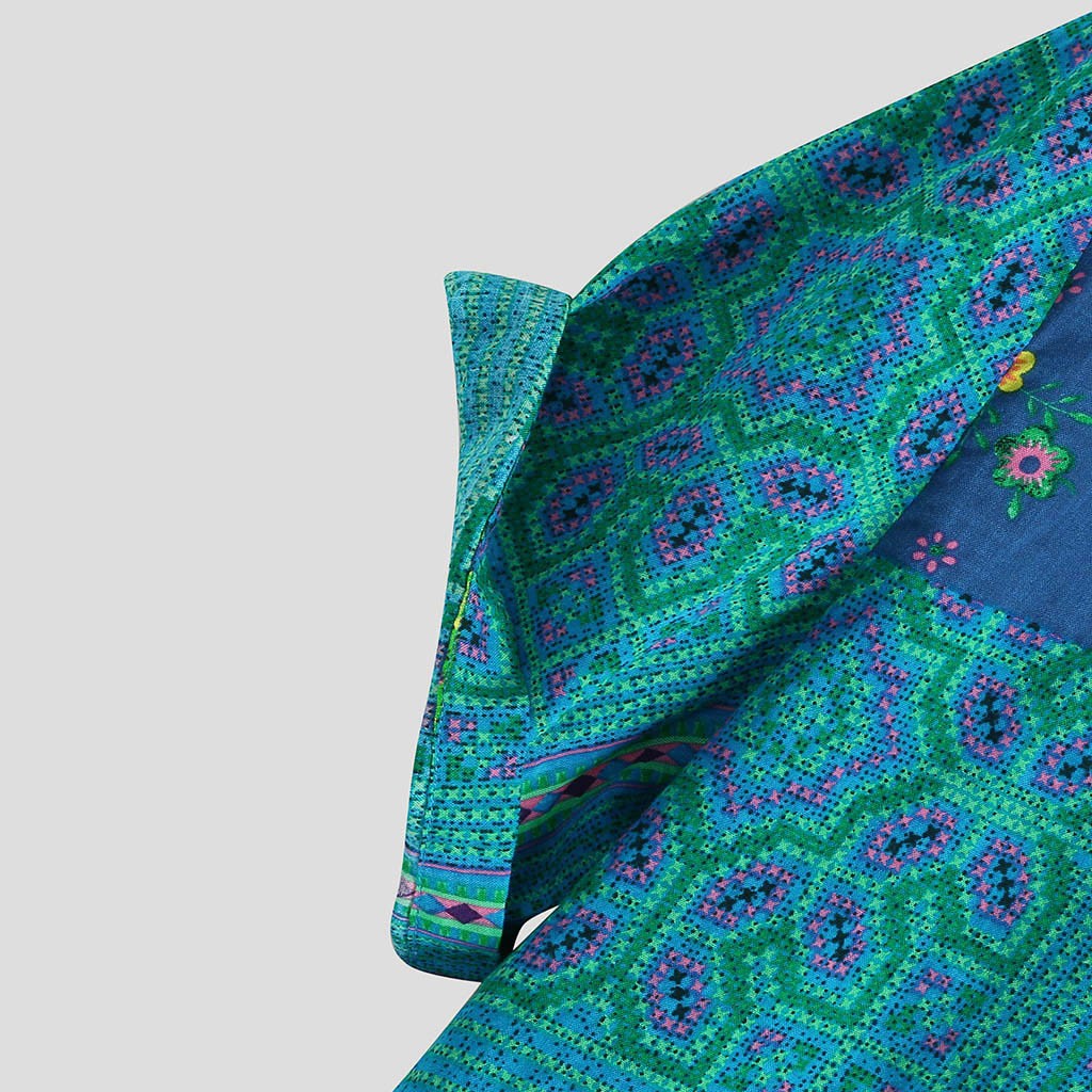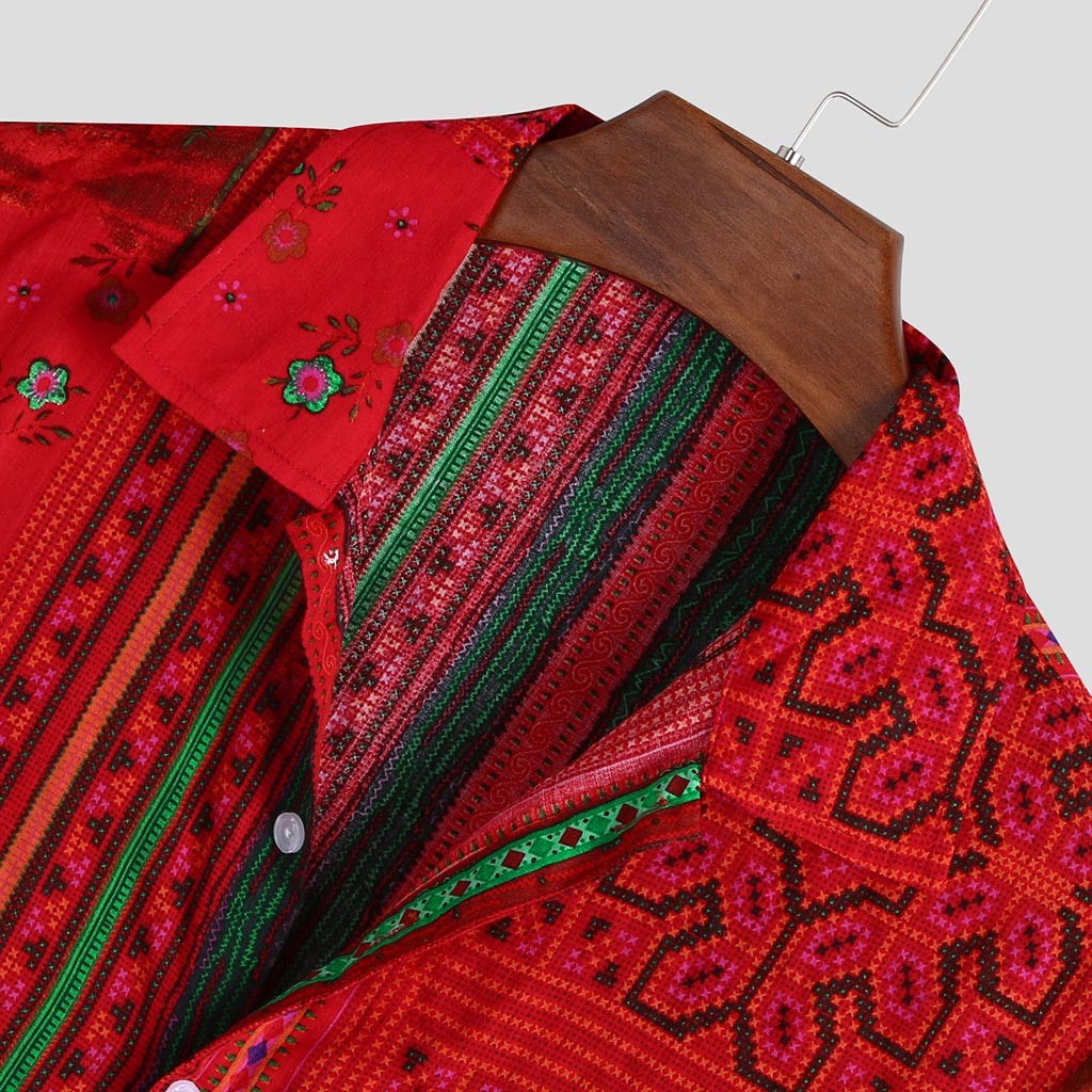 Mens Vintage Ethnic Printed Turn Down Collar Short Sleeve Loose Casual Shirts
