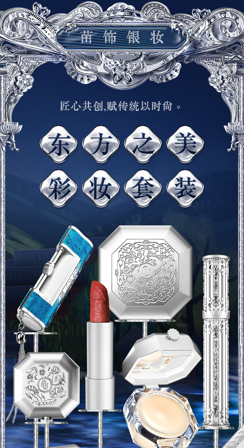 8 шт., античный серебряный набор для макияжа, Подарочная коробка, женская косметика, резная губная помада, свободная пудра, консилер для ресниц, BB крем, набор инструментов для макияжа