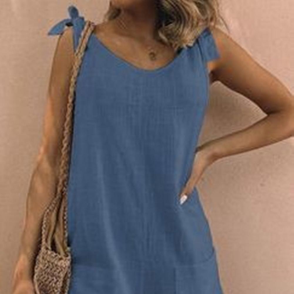 Регулируемый плечевой ремень можно использовать для завязывания красивого банта. Однотонный комбинезон с круглым вырезом, повседневный и простой.