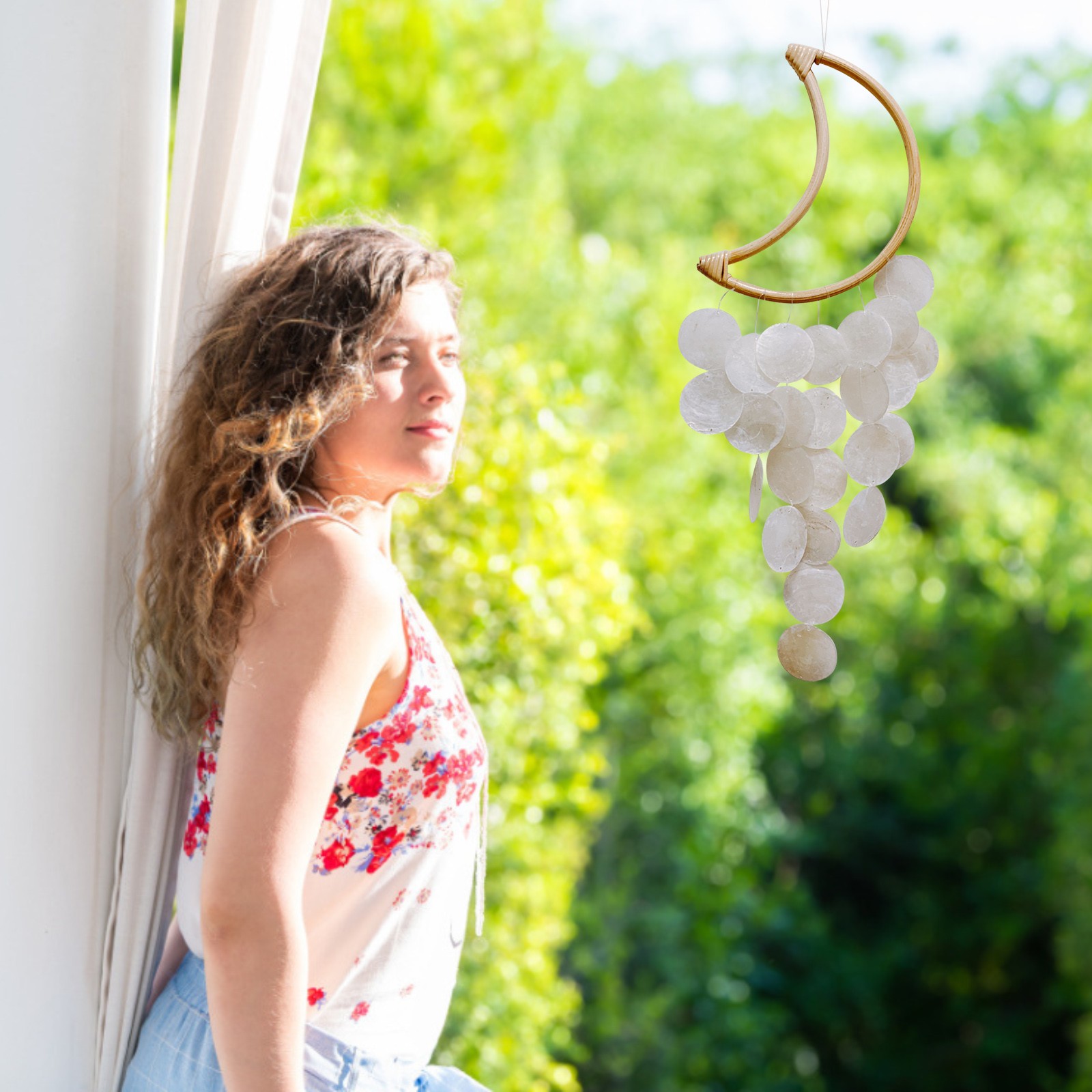 Красивые ветряные колокольчики, висящие в саду или в помещении, являются ремеслами, особенно висящими перед окном. Когда дует Бриз, они дают четкий звук, точно так же, как благословение издалека, которое может принести вам дыхание душевного спокойствия.