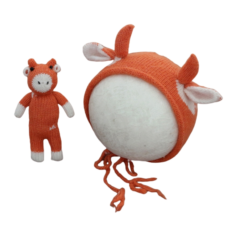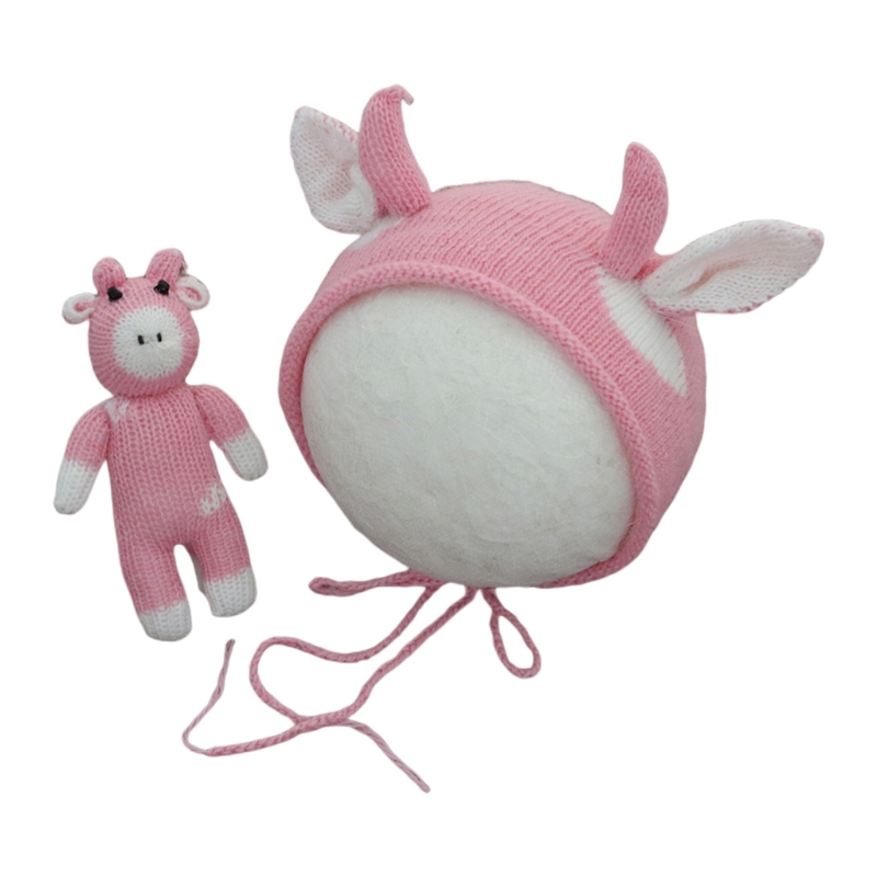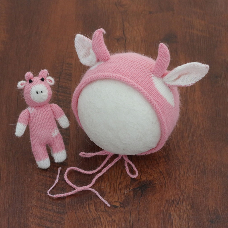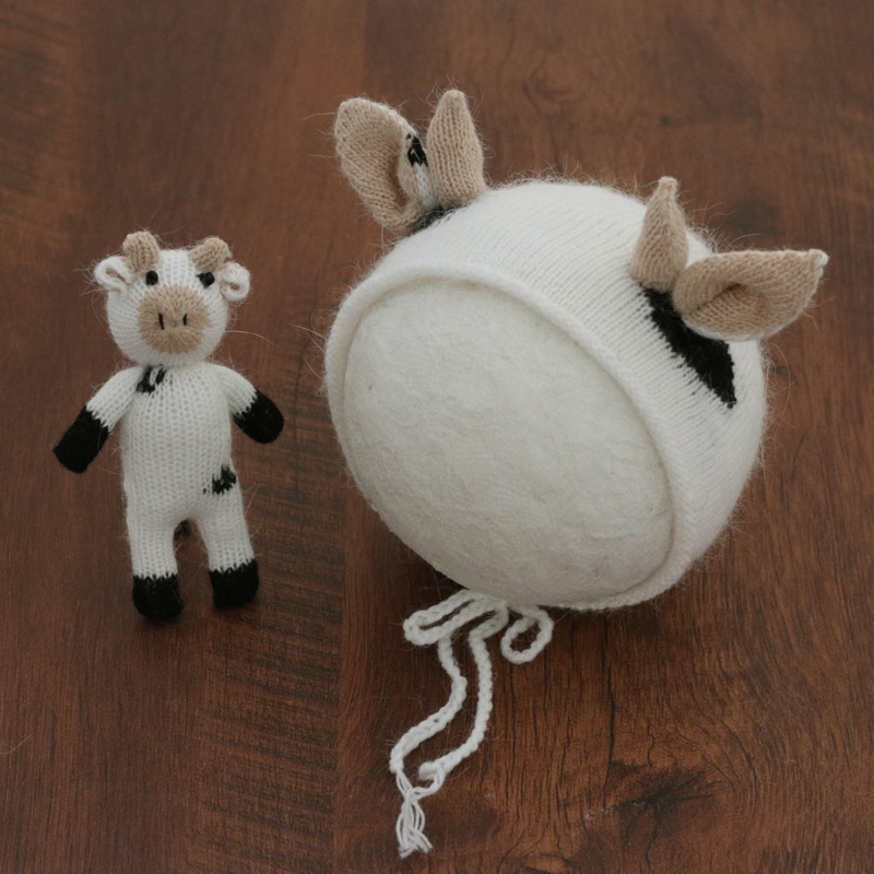 2 шт. детская вязаная шапка с коровой, кукла с животными, комплект ручной работы, мохер для вязания крючком, шапочки, реквизит для фотосессии новорожденных100% новый и высокое качество