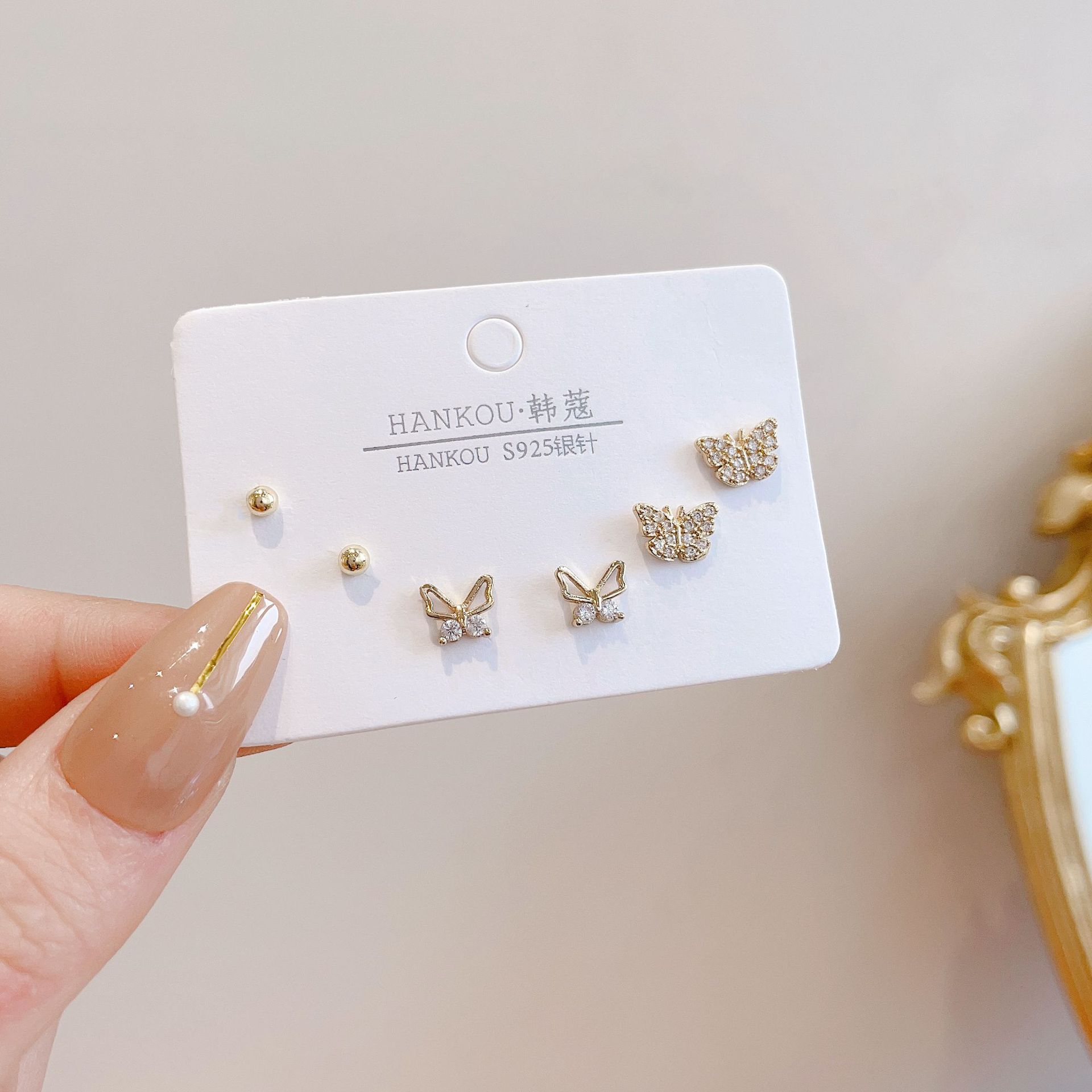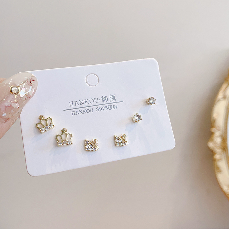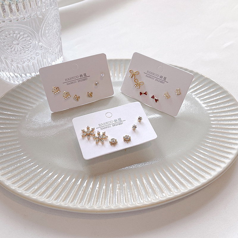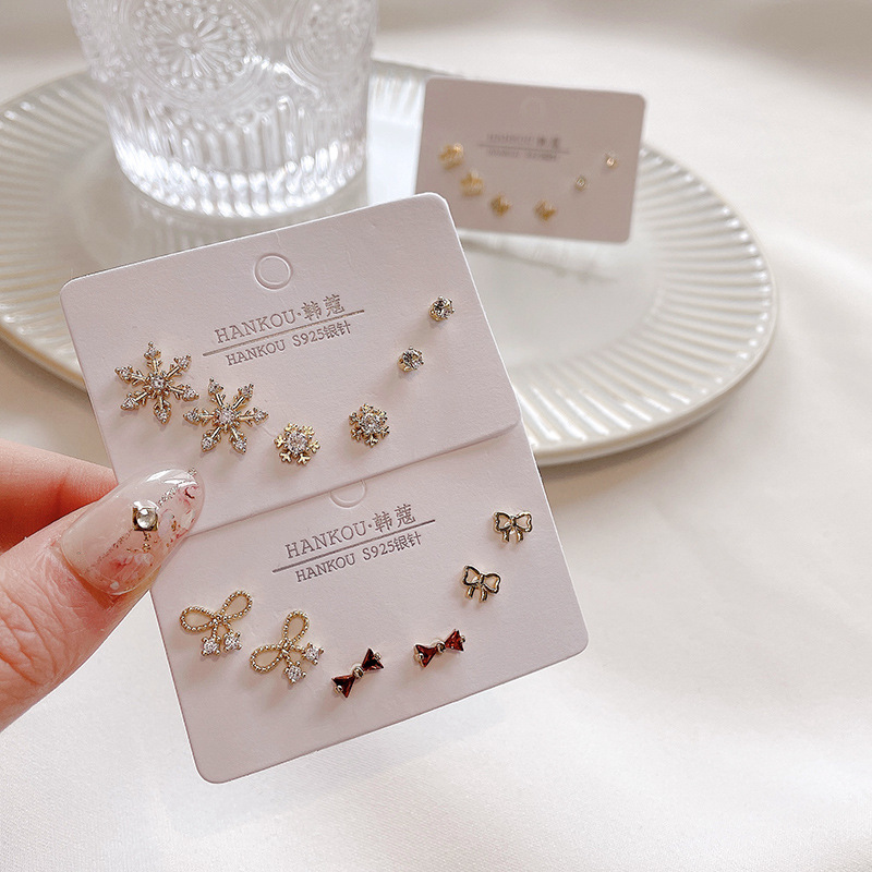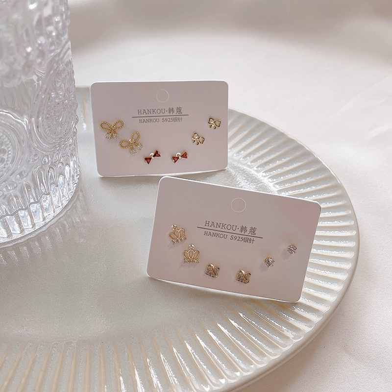 Серьги-гвоздики, набор женских игл, 6 шт./компл., мини милые металлические сердечки, луна, серьги, простые модные милые жемчужные серьги с кристаллами, ювелирные изделия