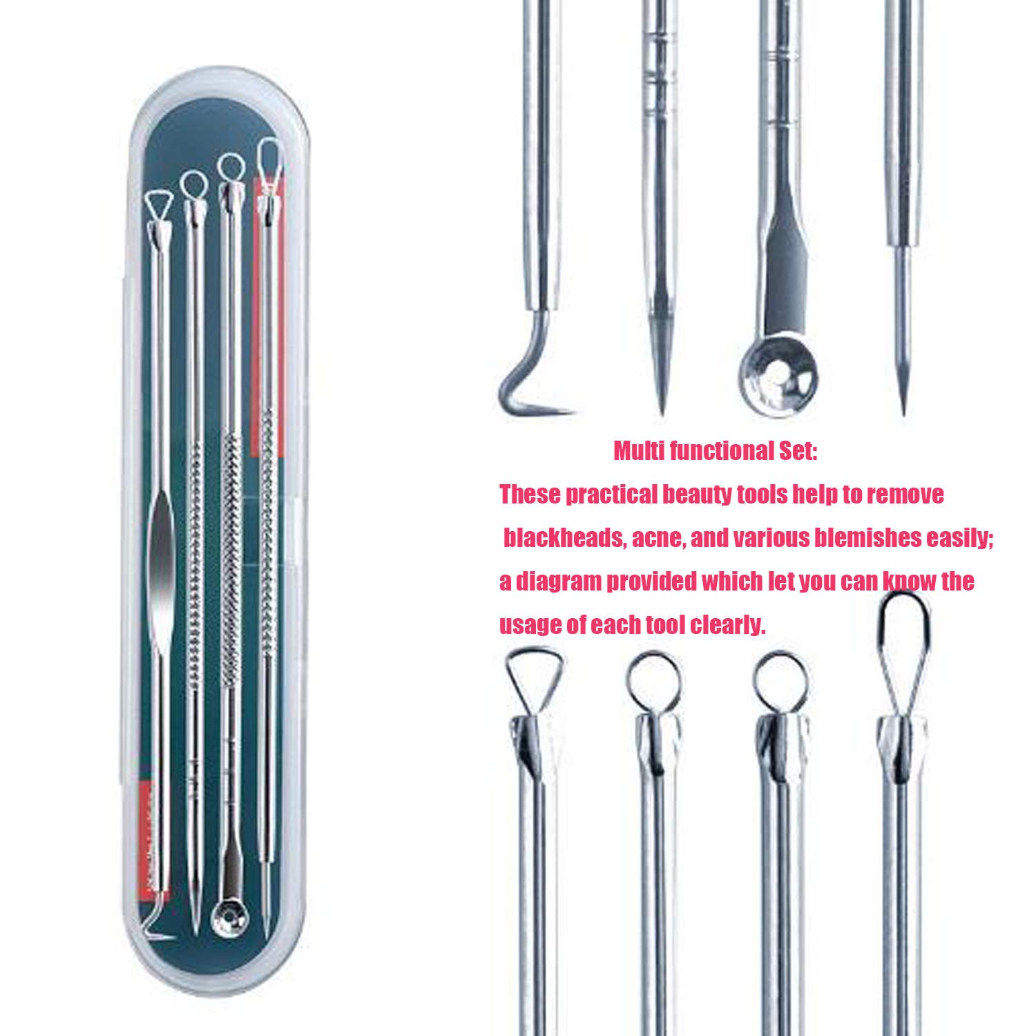 ✅Полезный набор для ухода за кожей: Более чистый и гигиеничный способ, чем ваши пальцы, для удаления примесей, таких как прыщи, черные головы, белые головы, комедоны и прыщи.