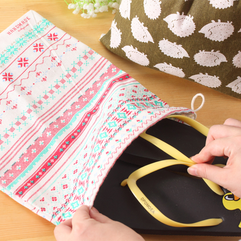 Women Shopping Bag Foldable Cotton Drawstring Grocery Shopper Tote String Bags Sundries Shoes Cloth Socks Storage Bags Organizer