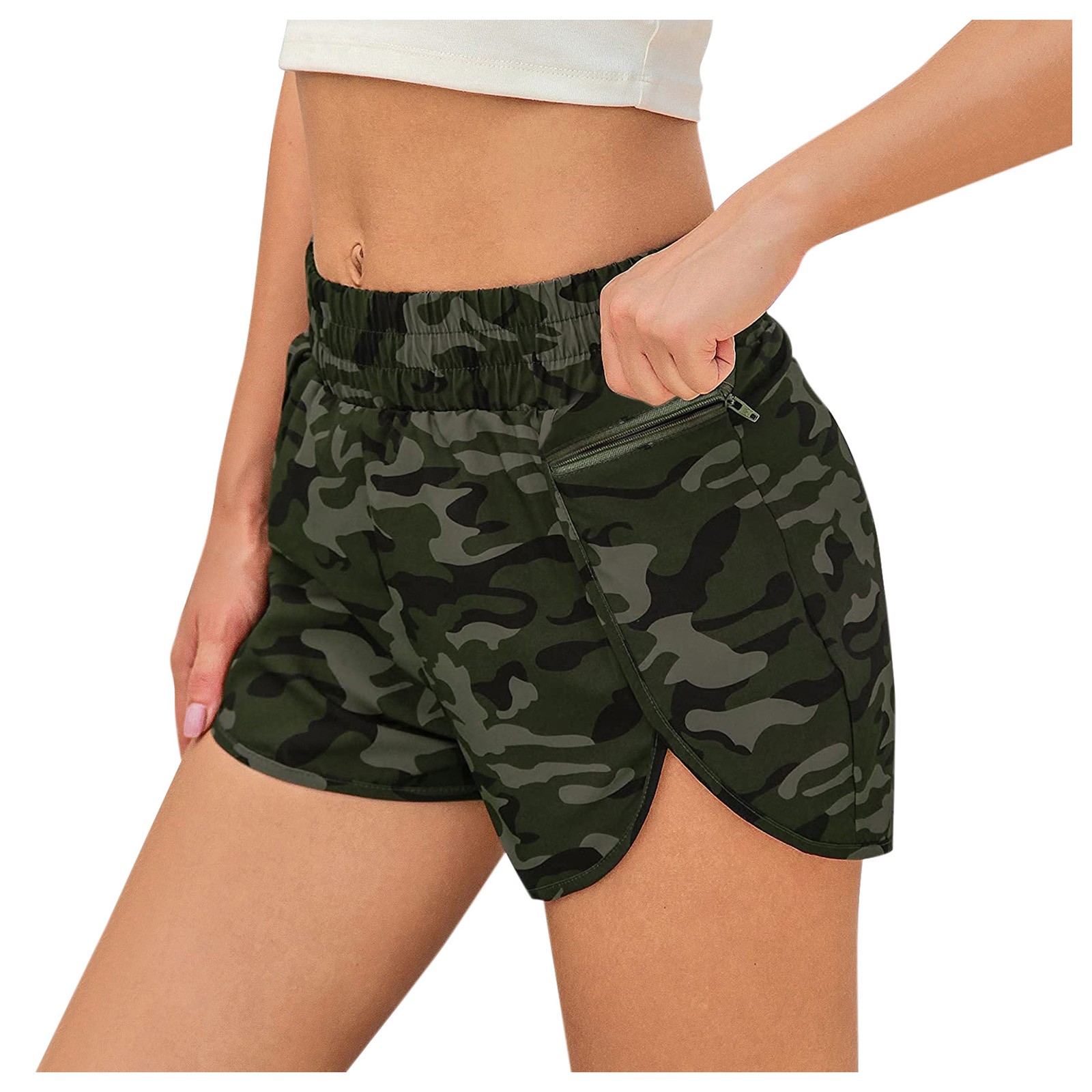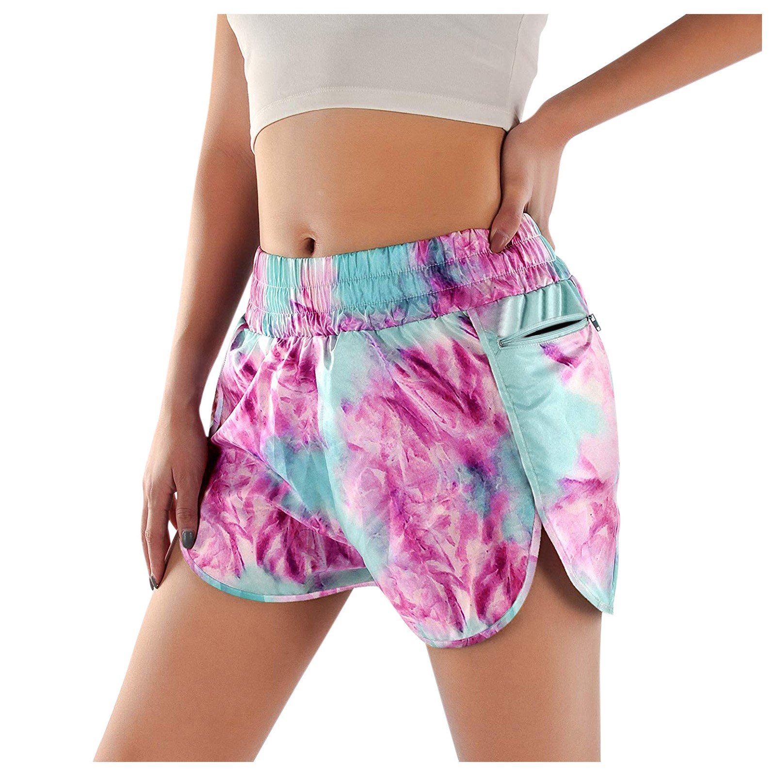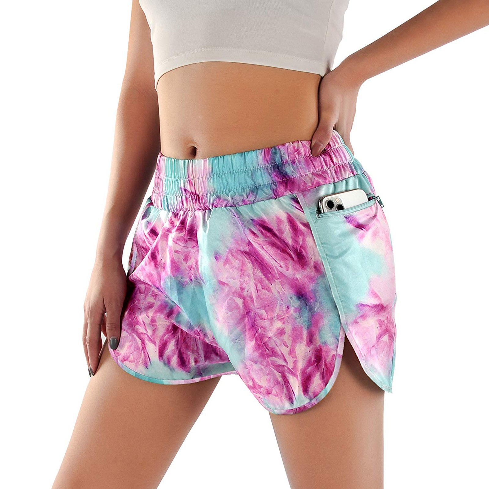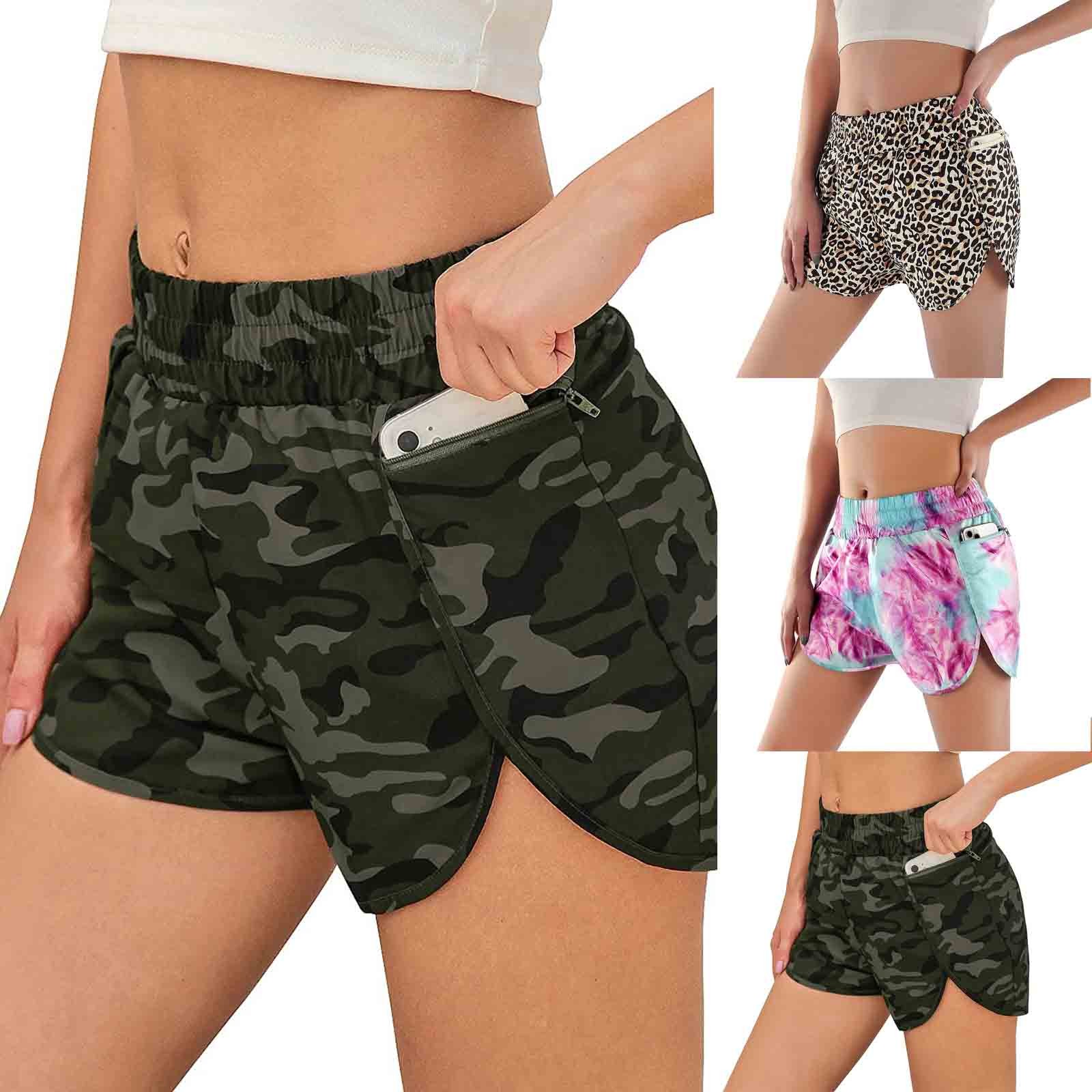 Женские повседневные спортивные шорты с принтом и карманами для бега