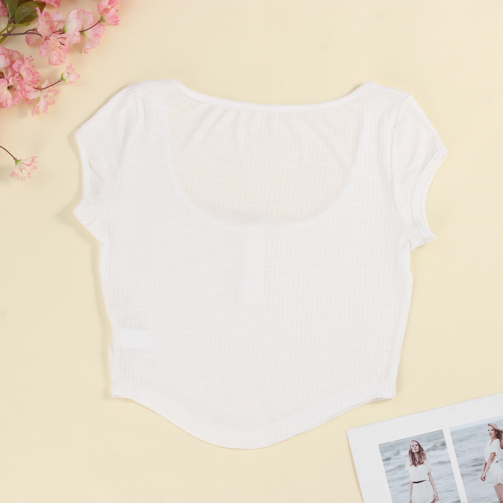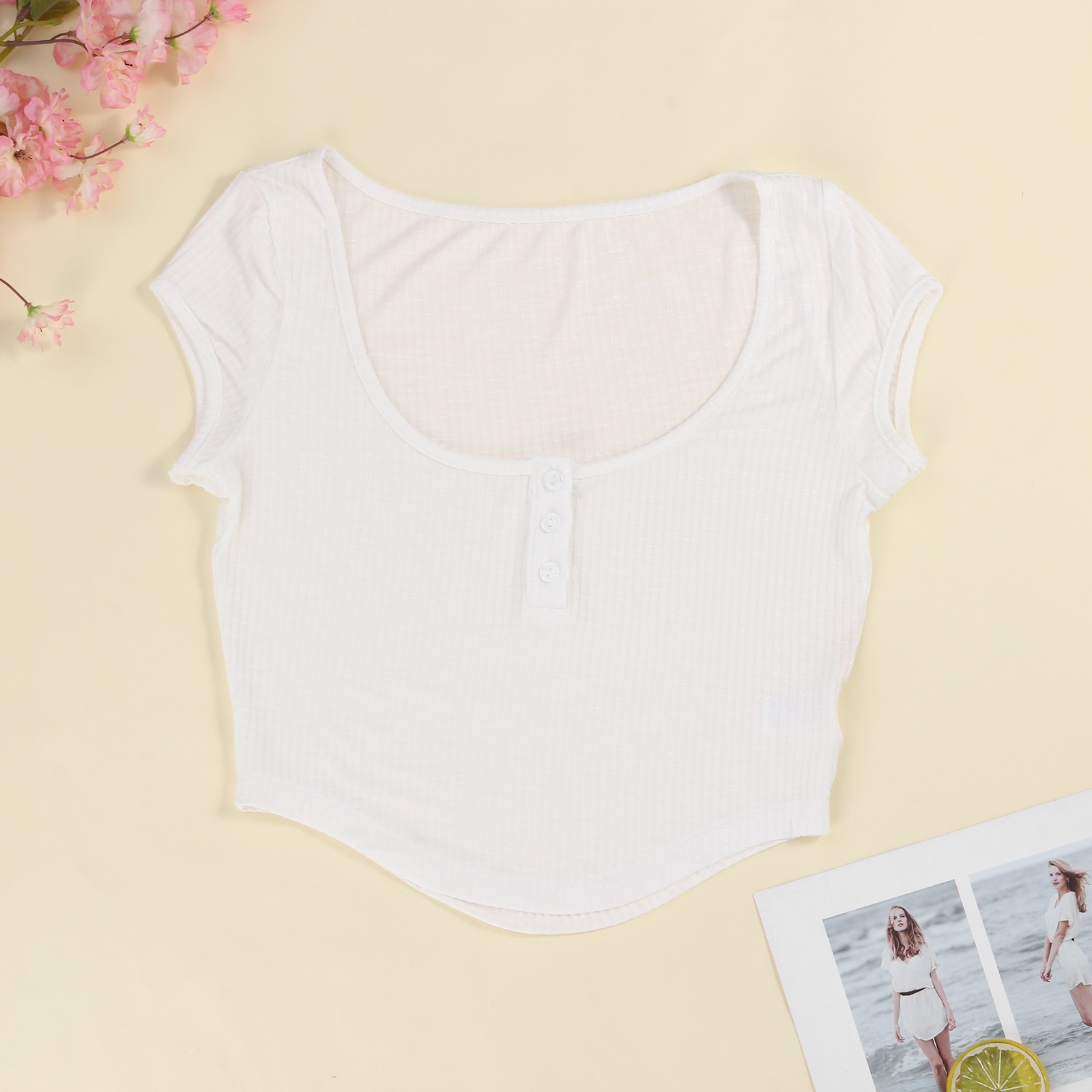 Женская сексуальная блуза до пупка с коротким рукавом и низким воротником, милая брендовая футболка для отдыха