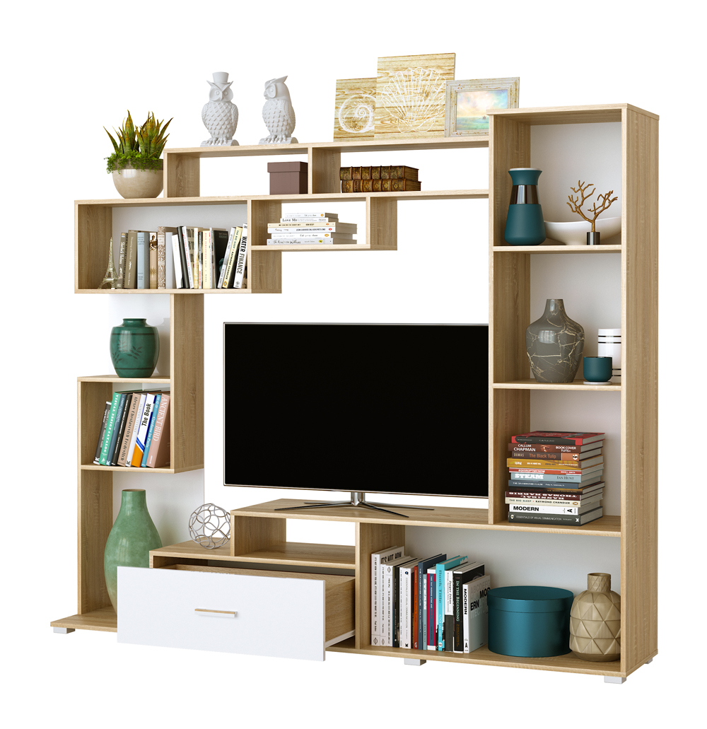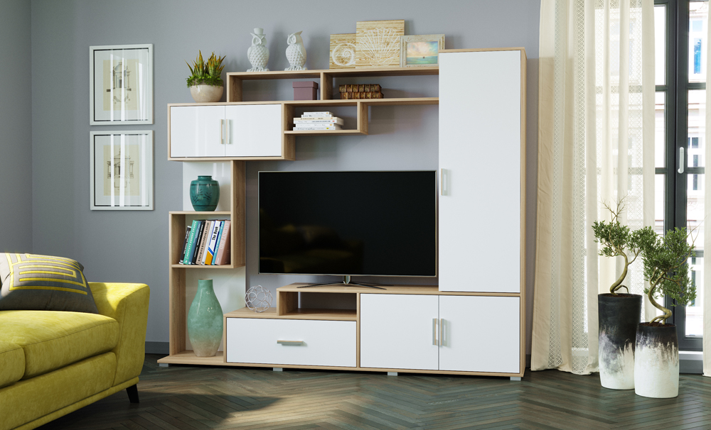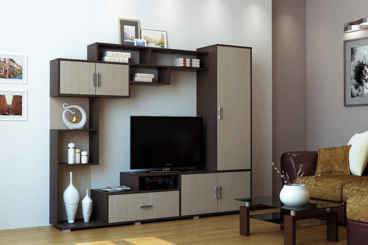 All elements of the living room are installed on adjustable legs-supports.