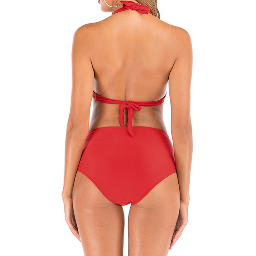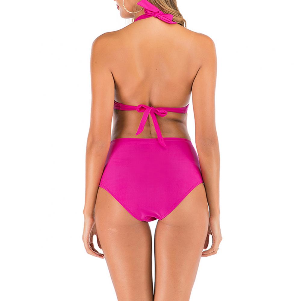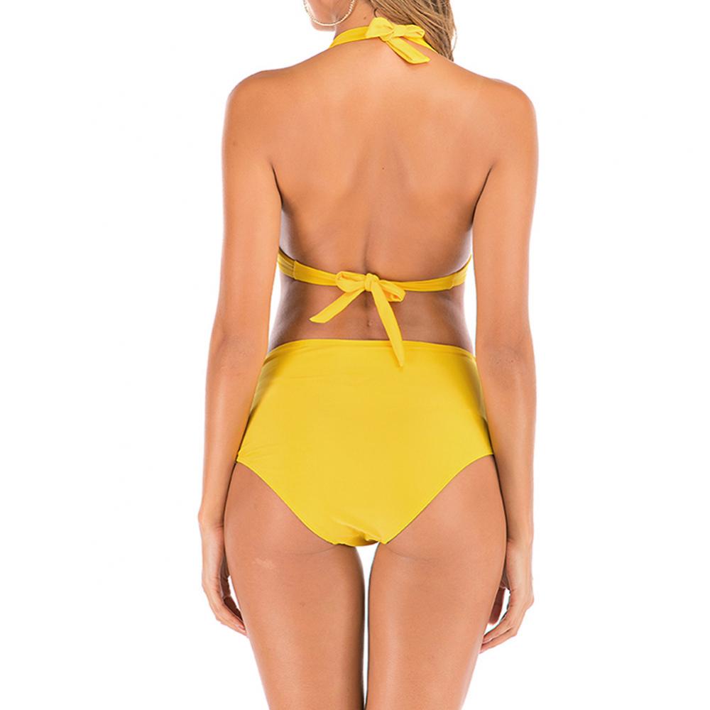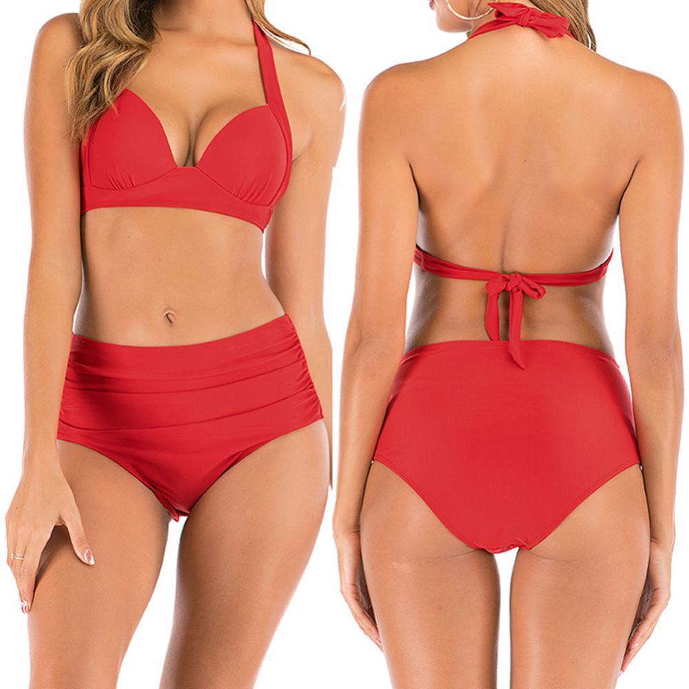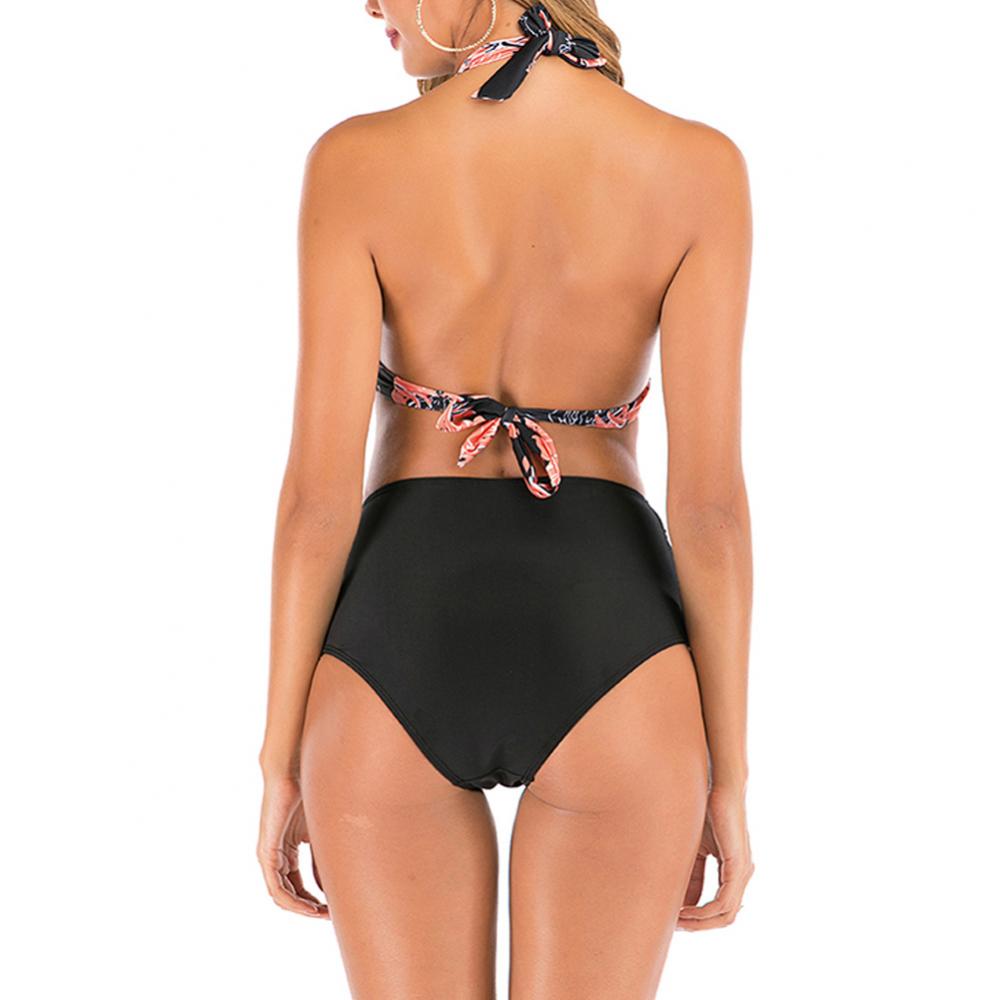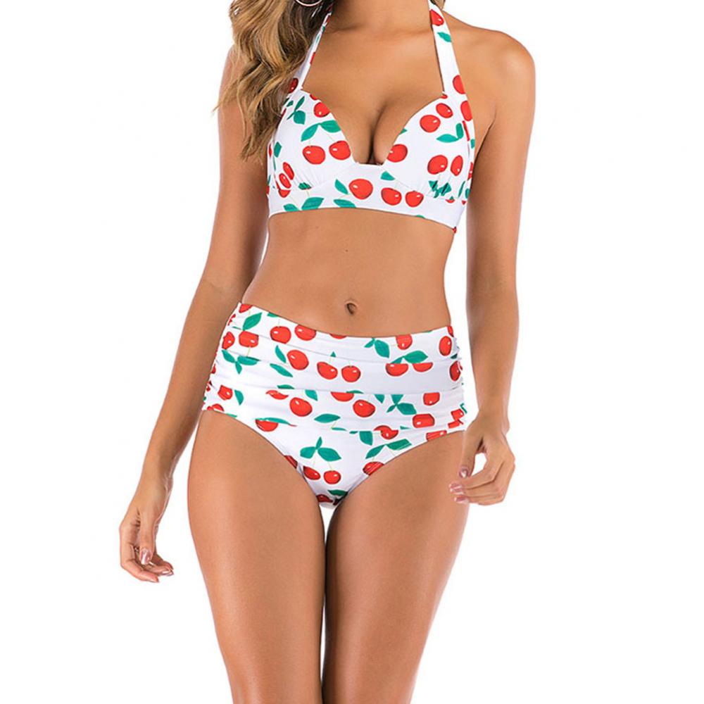 Женский сексуальный купальник с цветочным принтом, комплект бикини без подкладки, бюстгальтер с лямкой на шее, трусы с высокой талией