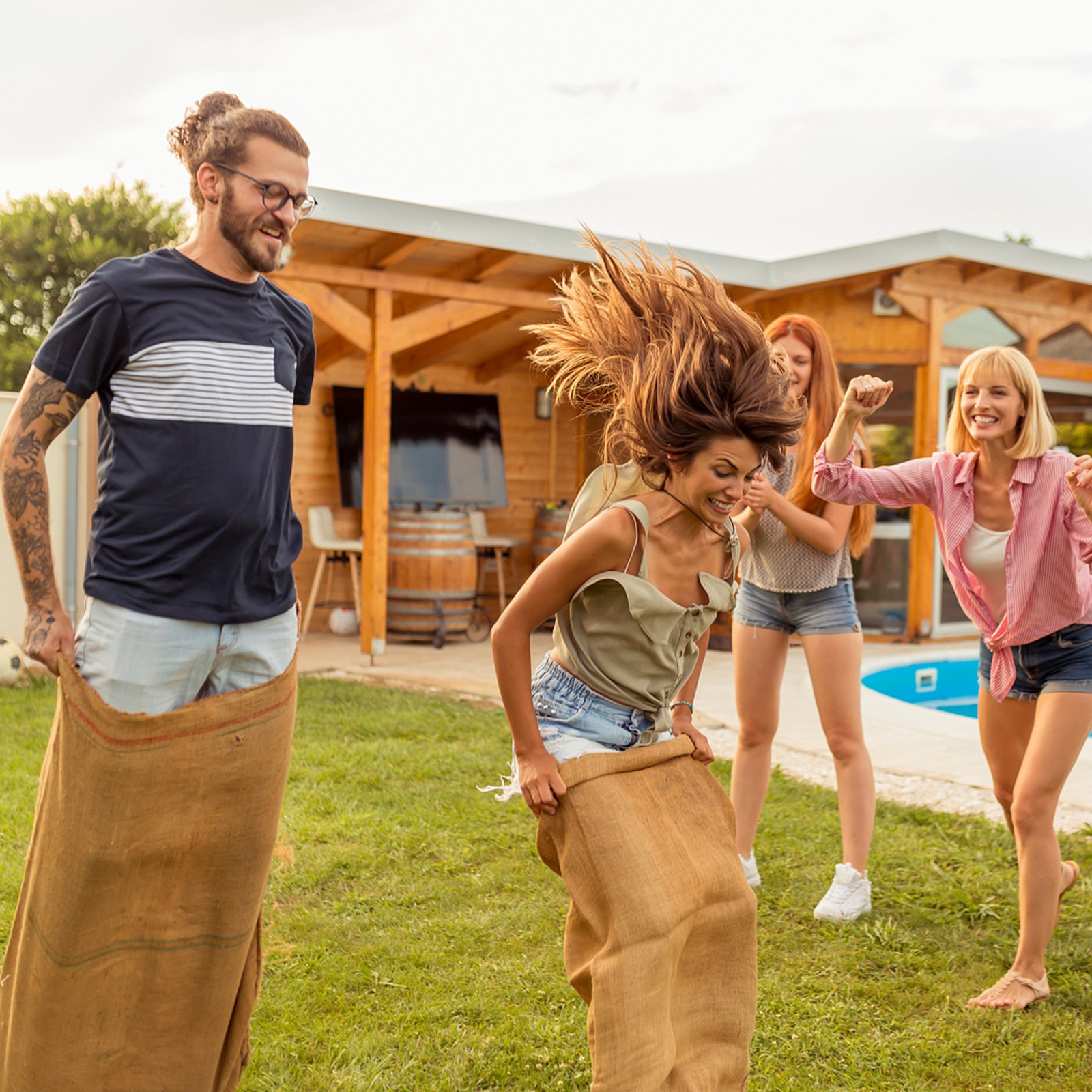 Мешок соревнований или мешок Соревнование-это соревновательная игра. Участники ставят ноги В мешке или наволочке, которая достигает талии или шеи, а затем Двигайтесь вперед от начальной точки до конечной точки. В Первый человек, пересекающий последнюю линию, является победителем гонки. В некоторых случаях победитель этих соревнований получит Какая-то награда. Эти мешки изготовлены из натурального джута Мешковина, также называемая мешковиной.