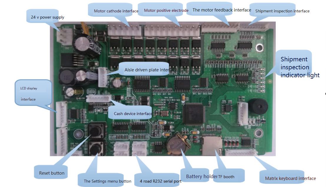 24VPower Supply принесет ваш own60Freight way 485 порт он может управлять несколькими подшкафами, поддержка (обнаружение падения, GPRSnetworking, LCD4Inch экран, MDBport, SDcard, голосовой модуль, qr-код, Alipay, WeChat, изменение для монет, несколько клавиатур).