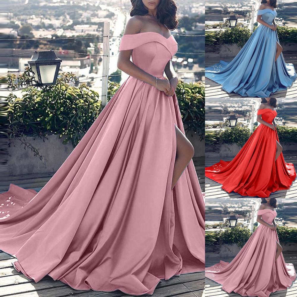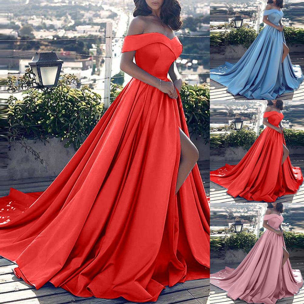 Formal Dress Off Shoulder High Slit Elegant Floor Length Prom Dress for Wedding Plus Size Satin Party Dresses Glamorous Formal Sexy