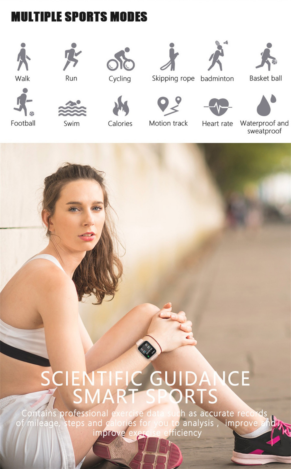 Отслеживание активности, водонепроницаемость IP67, 8 режимов упражнений, секундомер, спортивные данные