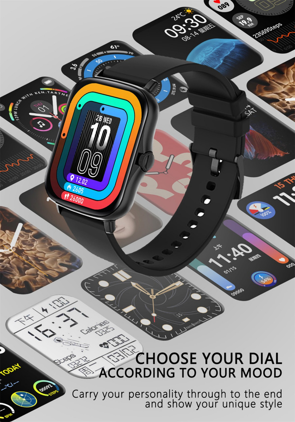Уведомления, будильник, погода, затвор, управление музыкой, 100 + часы