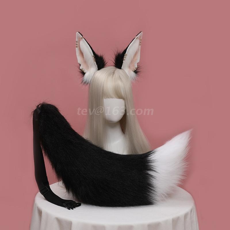 Плюшевая повязка для волос, обруч с ушками волка, головной убор, комплект хвоста, костюм фурри, нарядный наряд, вечерние аксессуары для Хэллоуина