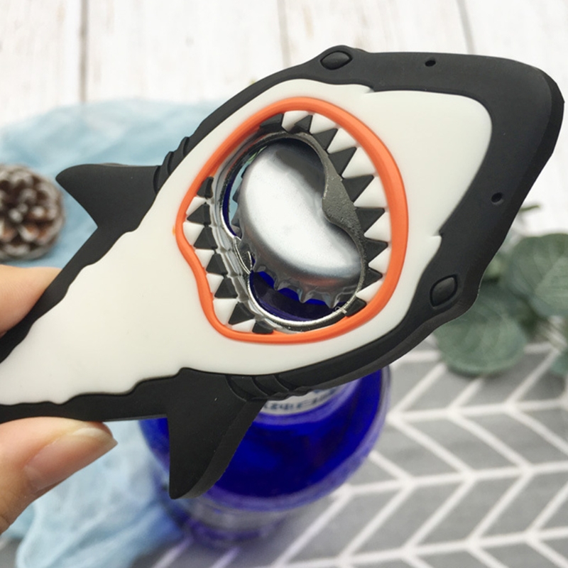 Магнитный силиконовый открывалка для бутылок в форме акулы, нескользящий консервный нож, экономит работу, стеклянная бутылка для кухни