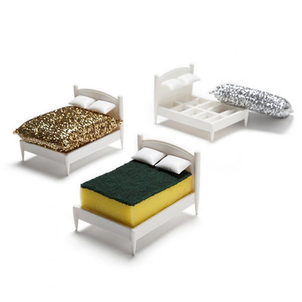 Держатель для губки, разработанный в форме кровати и с четырьмя ножками, выглядит более привлекательно и может оставаться стабильным в местах с водой.
