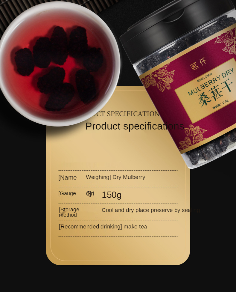 Восполняющая кровь, бодрящая qi, активирующая кровь и устраняющая застой крови, и улучшающая кроветворную функцию организма, является ключевой ролью замачивания в воде сухого тутового шелковицы. Так как сама черная тушь является здоровым свежим фруктом, который может восполнять кровь и Ци, она не только содержит богатые и красочные питательные вещества. Существует также множество активных ферментов и углеводов, которые могут способствовать преобразованию красных кровяных клеток в организме и улучшить собственную кроветворную функцию организма. Часто использовать его для замачивания в воде может предотвратить анемию и также может иметь особенно хороший эффект крови и qi.