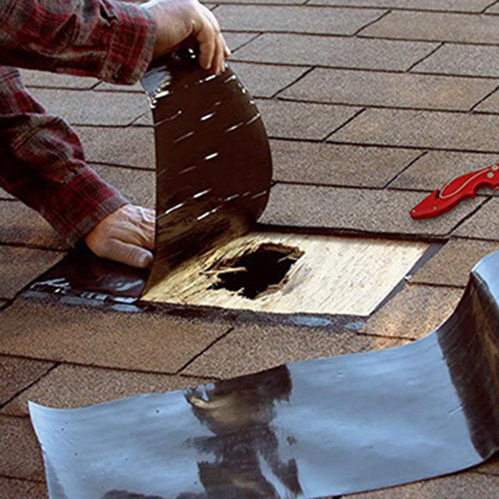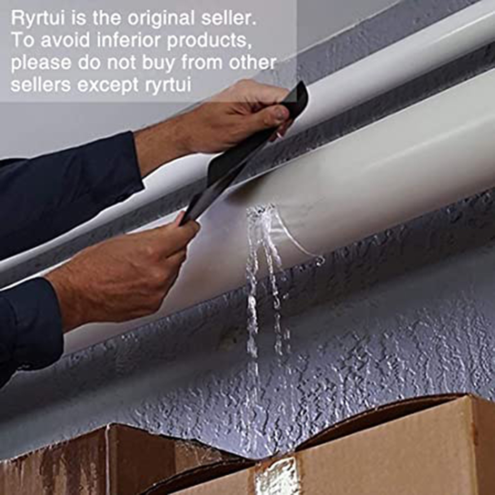 - 3. Быстро вставьте ленту в точку утечки