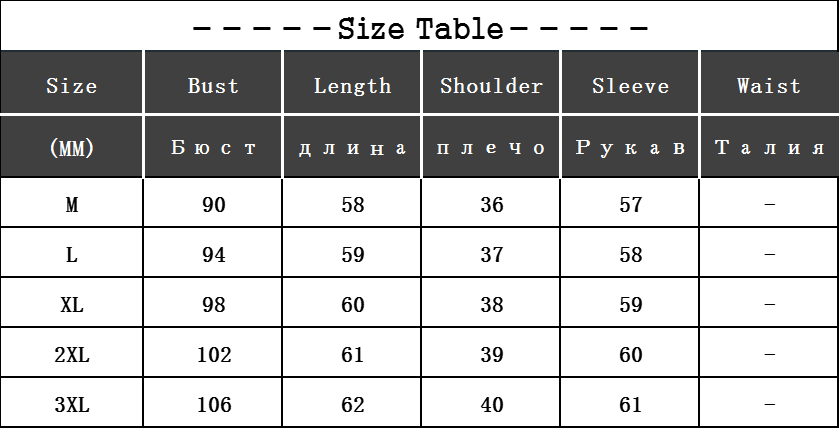 * 2. В таблице размеров, все параметры были взяты с внешней стороны, если вам нужно определить лучший размер, пожалуйста, проконсультируйтесь с продавцом, наша служба поддержки клиентов будет рада профессиональному предложению.