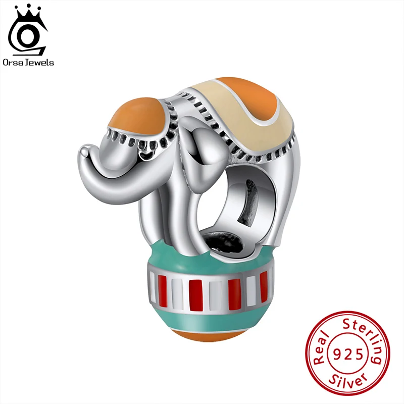 ORSA JEWELS из стерлингового серебра 925 пробы, цирковое представление, бусины в виде слона, подвеска, оригинальный браслет, сделай сам, для женщин, изготовление ювелирных изделий CB193