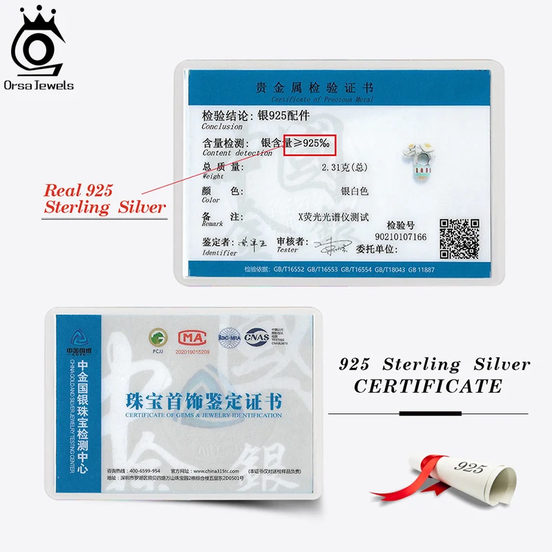 ORSA серебро 925 пробыВ драгоценностях используется подлинное серебро 92.5% пробы и высококачественный фианит AAA + CZ. |