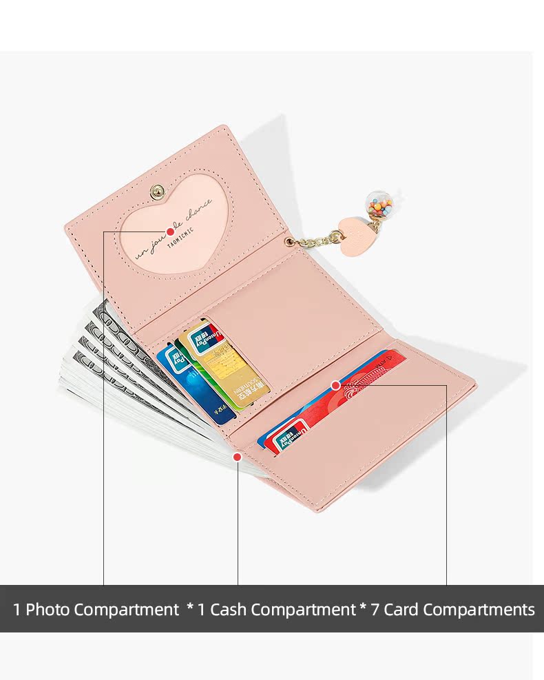 Практичная структура-7 отделений для карт, 1 отделение для фото и 1 отделение для наличных.