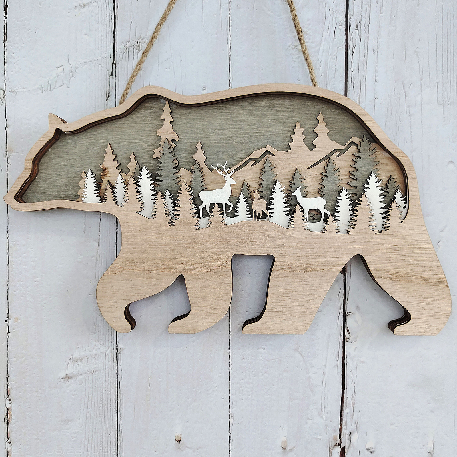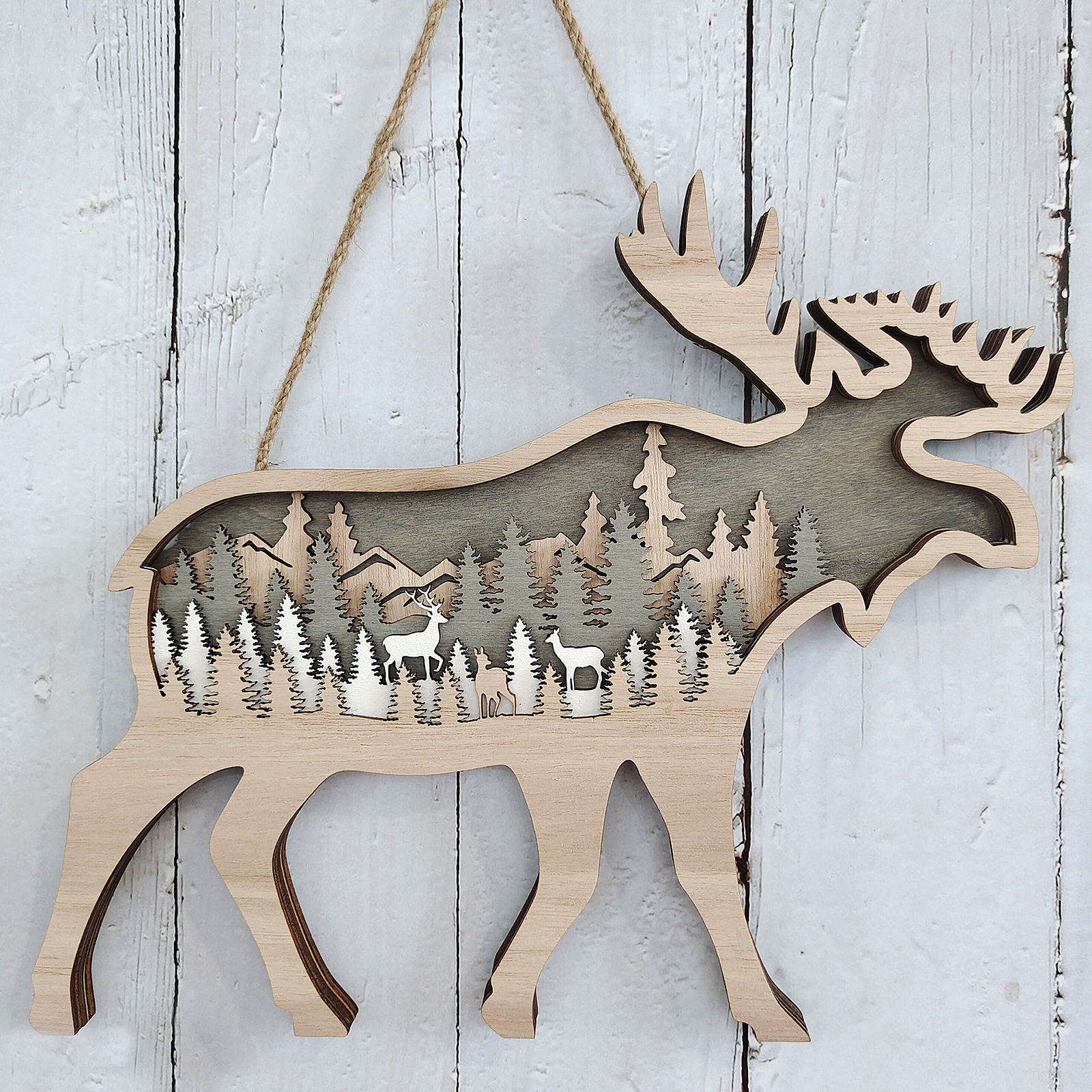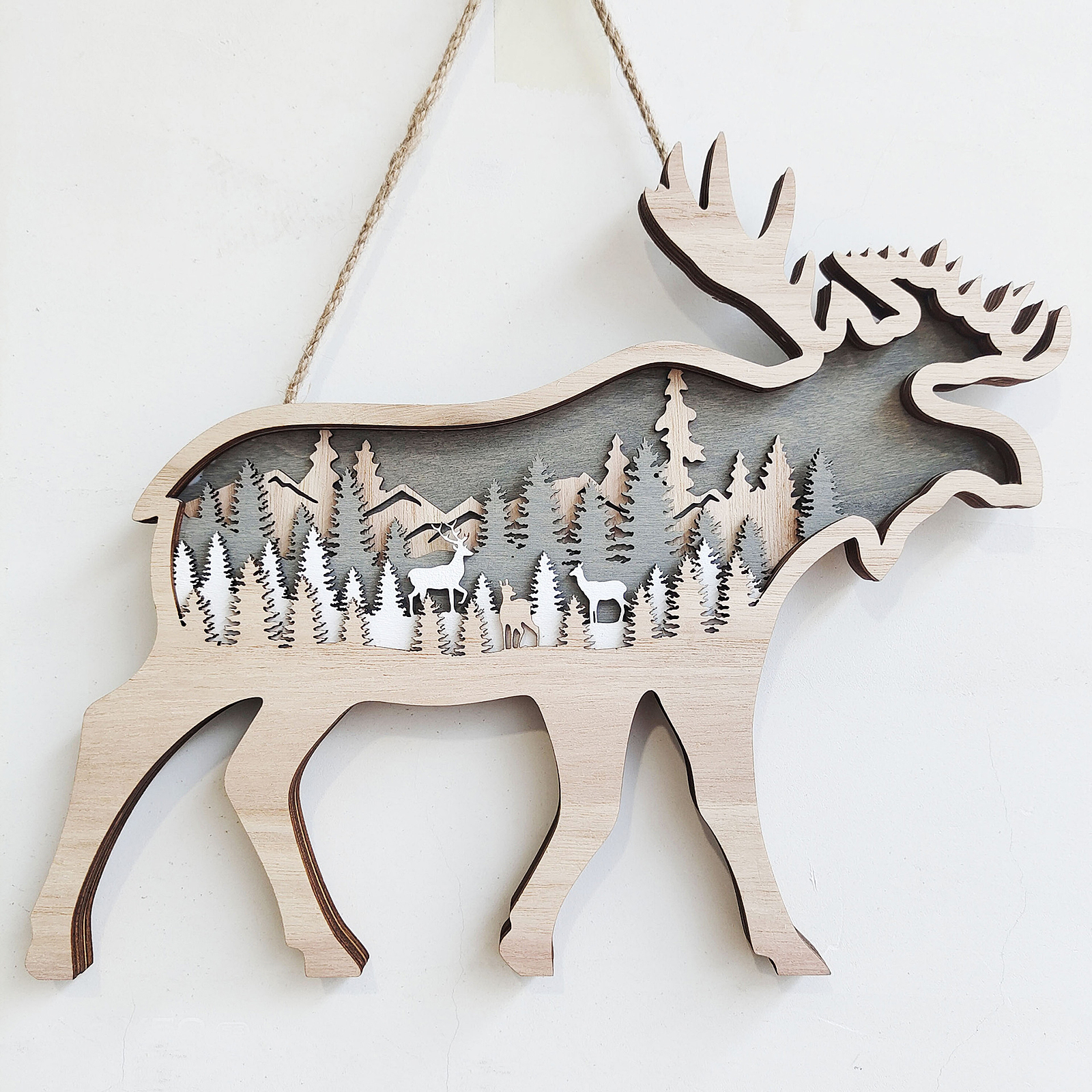 1. Выберите дерево высокого качества с изысканными деталями и Традиционными цветами, идеально подходит для украшения дома и Рождества. Размер «Лось»-31x23x1,5 см, а размер медведь 31x17x1.5cm