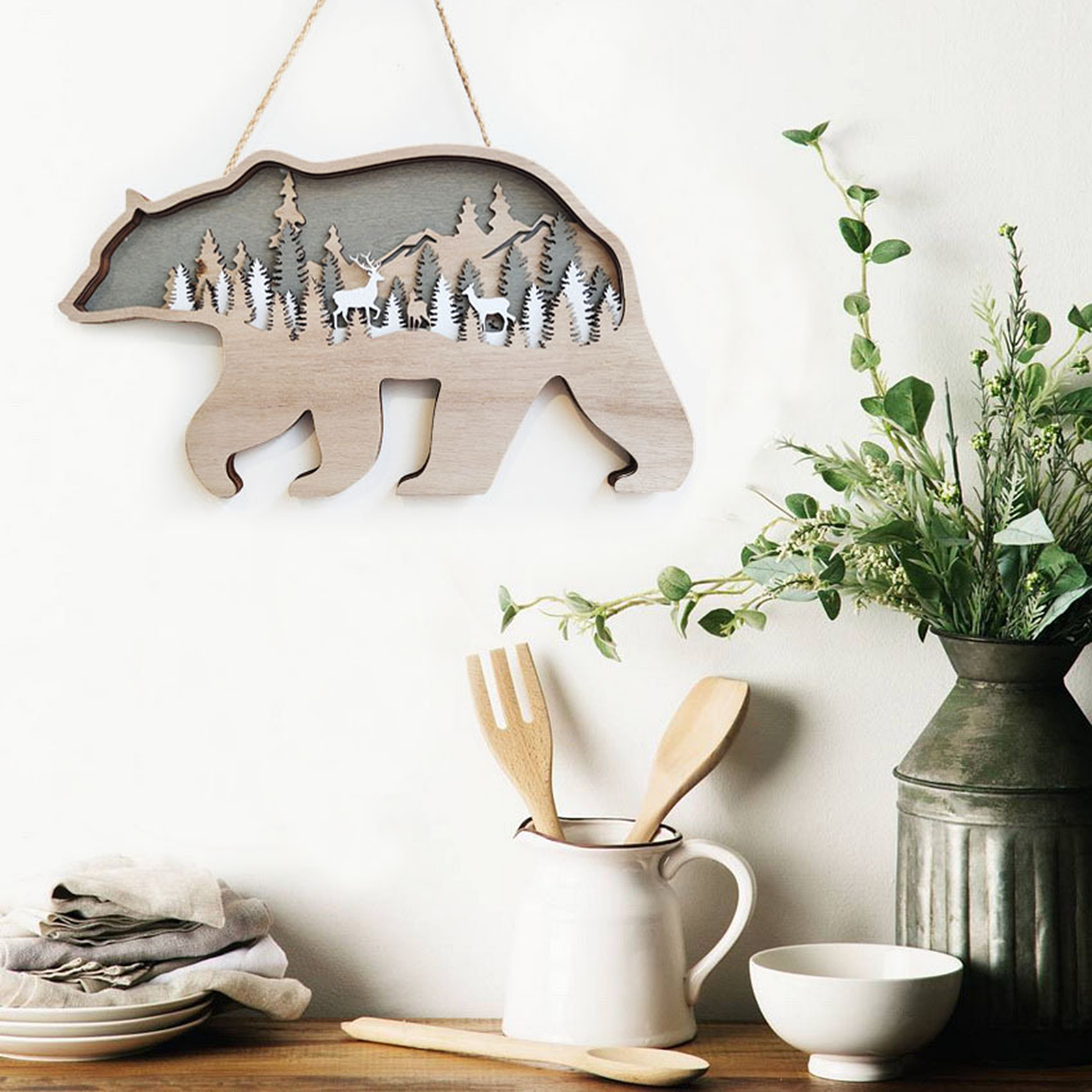 2. Если вы ищете естественную концепцию декора для вашей гостиной или спальни, этот декоративный деревянный олень и медведь привнесут богатый декор и высокий дух в ваш дом.